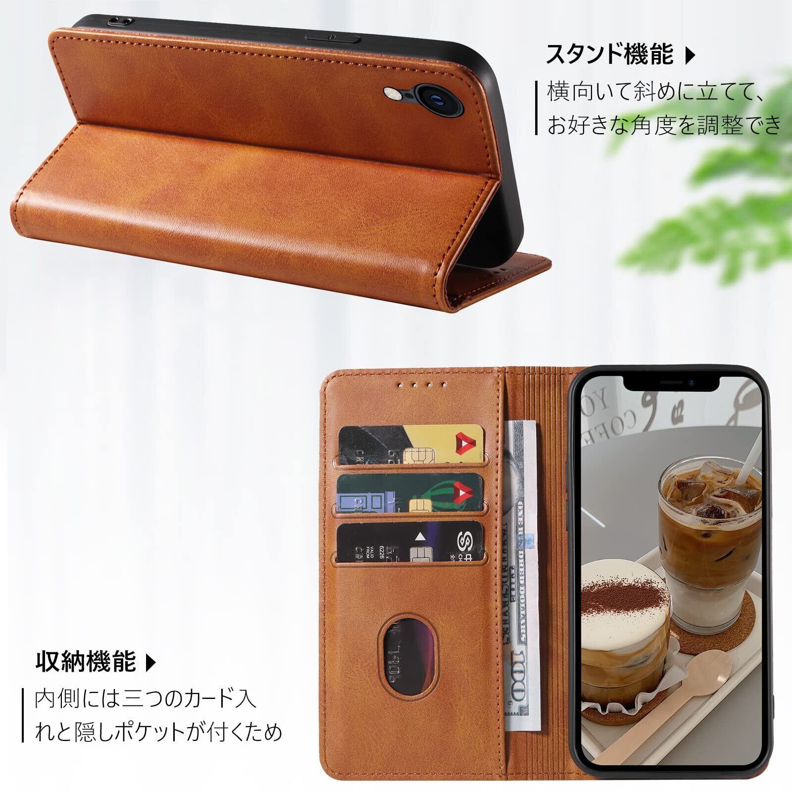 【KWATUNG】iphone xr ケース 手帳型 レザー スマホケース iphone xr 手帳型 軽量 放熱性 iphone xr 手帳型ケース 薄型 マグネット式 アイフォンxrケース 手帳型 カード収納 スタンド機能 iphone xrケース 手帳型 衝撃吸収 落ち着いた色 iphonexrスマホケース手帳型【ライトブラウン】 | hananoki