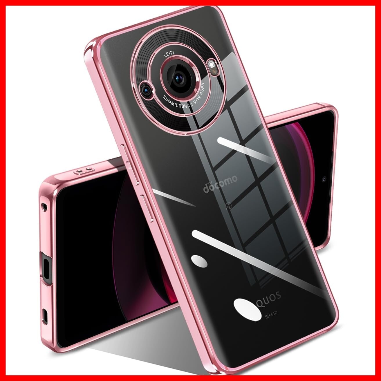 AQUOS R8 Pro ケース クリア 耐衝撃 アクオス R8 Pro SH-51D 透明 カバー 衝撃吸収 可愛い 柔らかい ワイヤレス充電 メッキ加工 薄型 ファッション 人気 滑り止め 黄ばみ防止 指紋防止 軽量 TPU 保護カバー(ローズゴールド) | hananoki