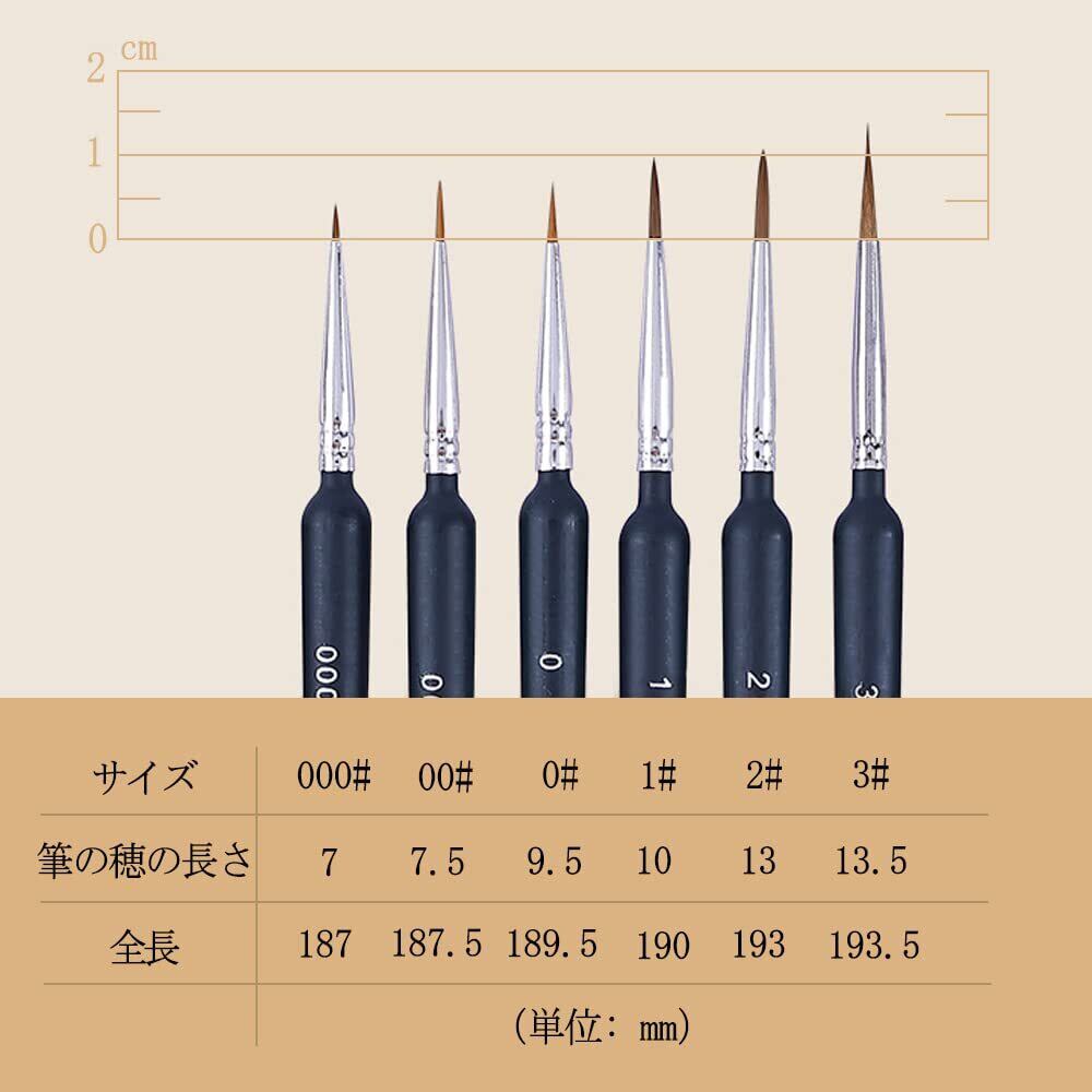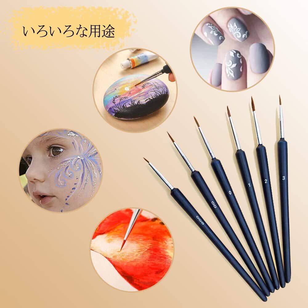 【種類が多い】#000、#00、#0、#1、#2、#3を6サイズをご用意しておりますので、さまざまな絵画需要を満たすことができます。精巧なパターンを描いたり、大面積の色を塗ったりするために、この製品は適切な筆を提供します。
