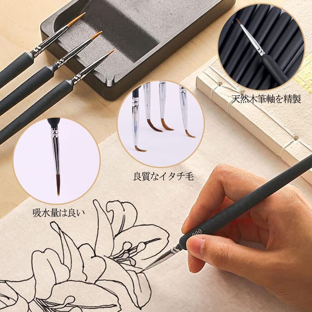 【多用途】アクリル塗料、油絵、水彩や顔ペイント、模型塗装などに適用し、極細のブラシは繊細な作業にも対応できます。プロの画家でも絵画愛好家でも、あなたのニーズを満たすことができます。