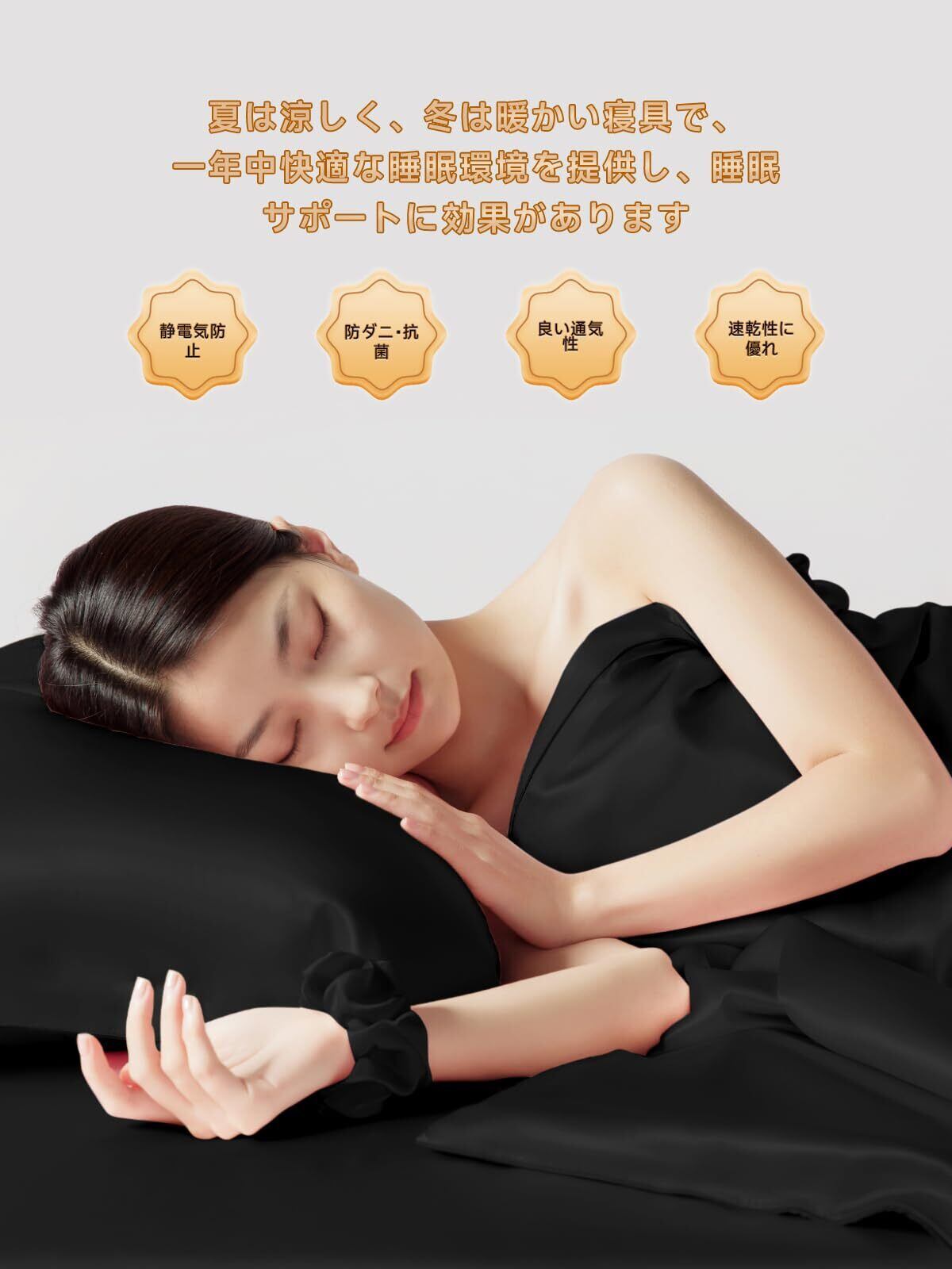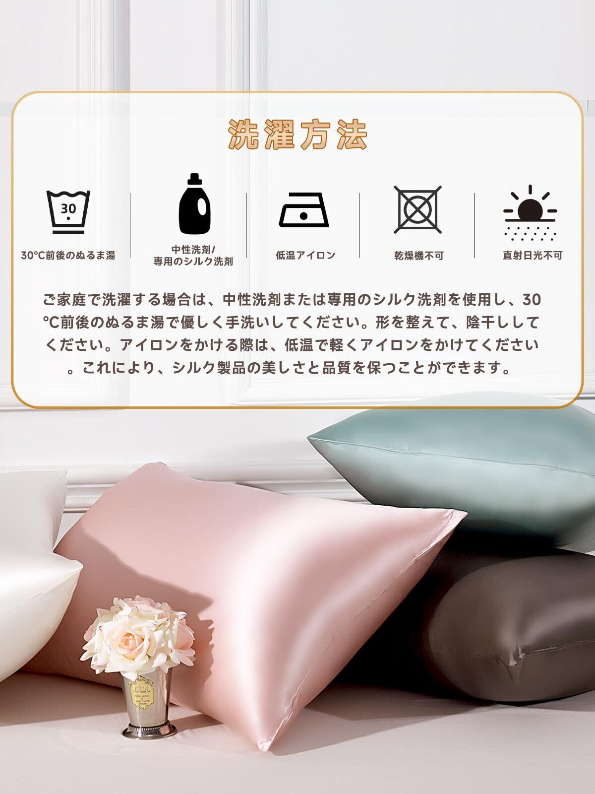 美髪・美肌:シルクは、摩擦を軽減し、肌に潤いを与える優れた素材として、近年美容界で注目を集めています。 シルクの表面は滑らかなので摩擦が起こりにくく、切れ毛・枝毛の悩みも改善できます。 シルクの枕カバーは純綿の枕カバーより通気性に優れています。肌の水分を調節し、肌に栄養を与えます。シルクも、ダニやカビの繁殖を防ぎ、皮膚アレルギーを防ぐことができます。綿と比較して、シルクの枕カバーが最適な選択です!