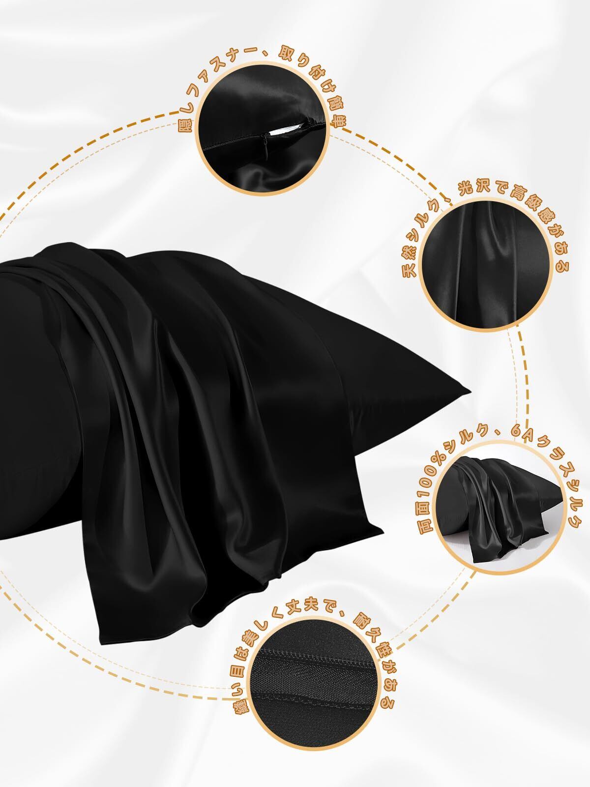THXSILK 枕カバー シルク 最高グレード6A OEKO認証済み 隠しジッパー 100%シルク 両面 洗える 睡眠サポート 寝癖軽減 美髪・美肌 敏感肌 静電気防止 防ダニ・抗菌 ギフト 贈り物 四季適応 一枚 (50*70cm・ ブラック) | hananoki
