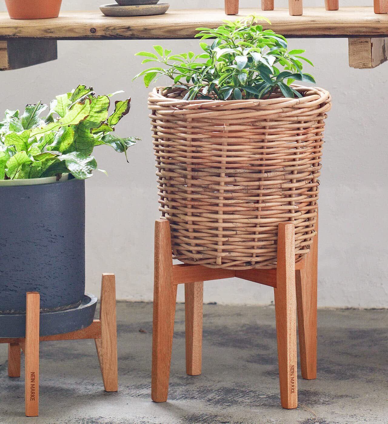 色々なテイストのインテリアに馴染むシンプルなデザイン。重心が低いロータイプは、どっしりとした鉢や植物にぴったり。脚には「NEIN MARKE」の焼印が印字されています。