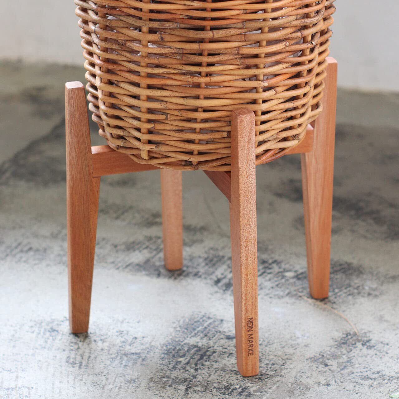 マホガニーを使った木の温もりを感じるポットスタンド。直径20cmの鉢サイズまで対応のナチュラルなポットスタンドです。色々なテイストのインテリアに馴染むシンプルなデザイン。重心が低いロータイプは、どっしりとした鉢や植物にぴったり。脚には「NEIN MARKE」の焼印が印字されています。