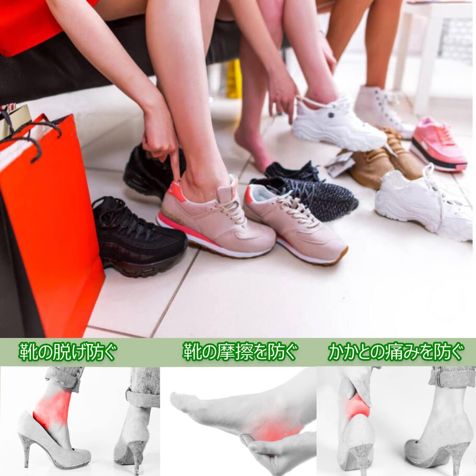 【足を強力に支える】柔らかく通気のよい圧力緩和フォームは、靴とかかとの摩擦を減らし、歩行時にかかる衝撃を和らげます。長時間使用しても変形しにくく、滑り止め効果が抜群です。靴サイズが合っていない、かかとがすぐに脱げてしまう、靴ずれするといった時に使えます。