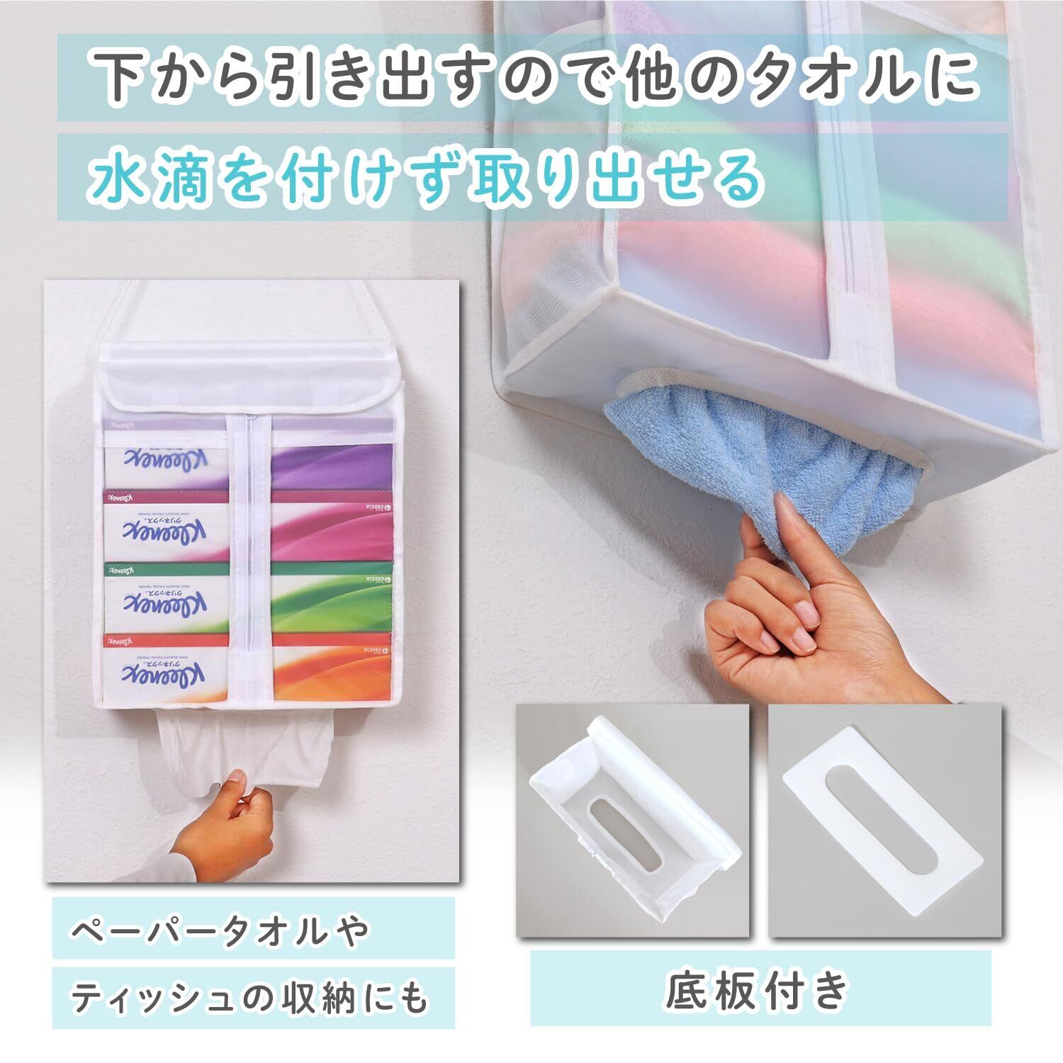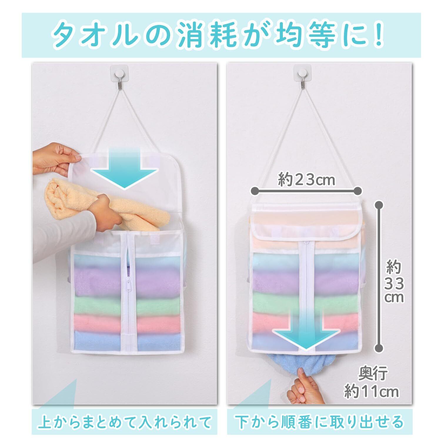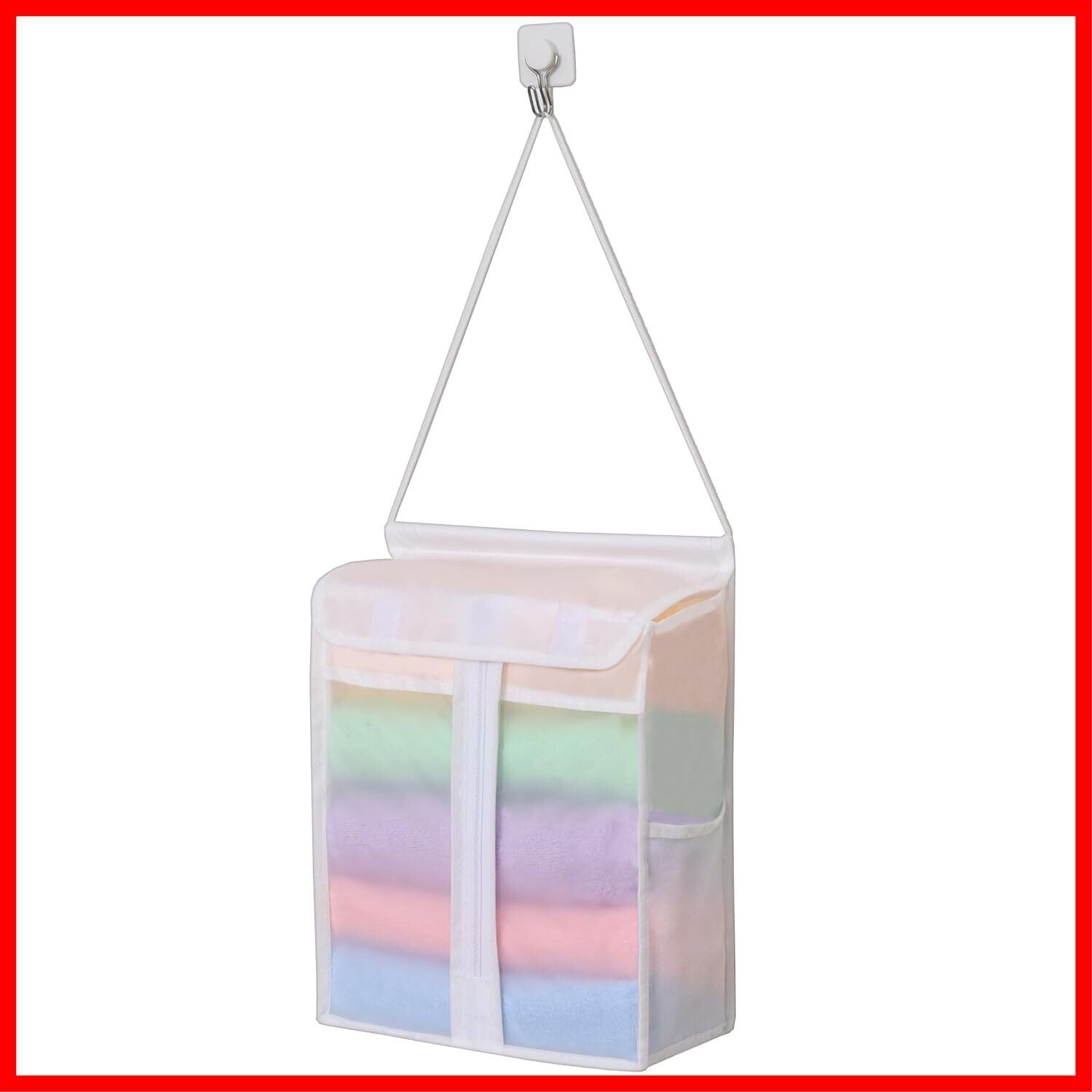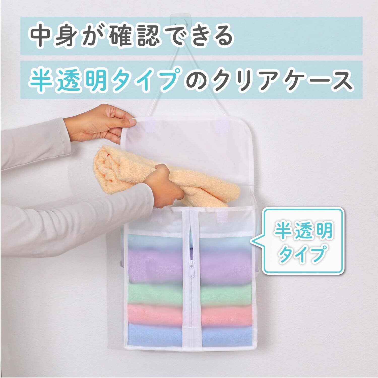 アストロ タオル収納ケース ホワイト 半透明 タオルストッカー 壁掛け 吊り下げ フェイスタオル入れ 保管ケース タオルホルダー 水に強い お手入れしやすい ポケット付き 110-03 | hananoki