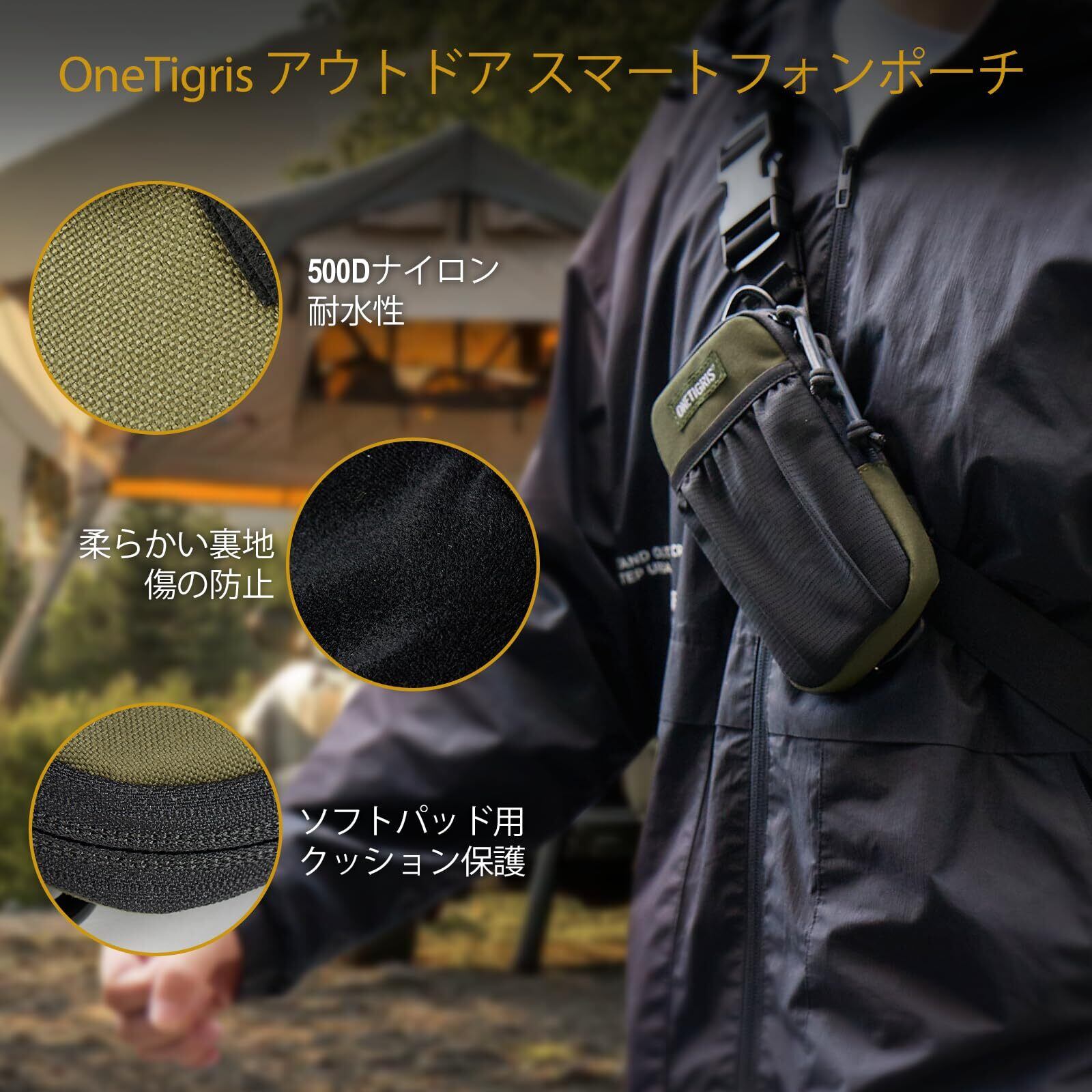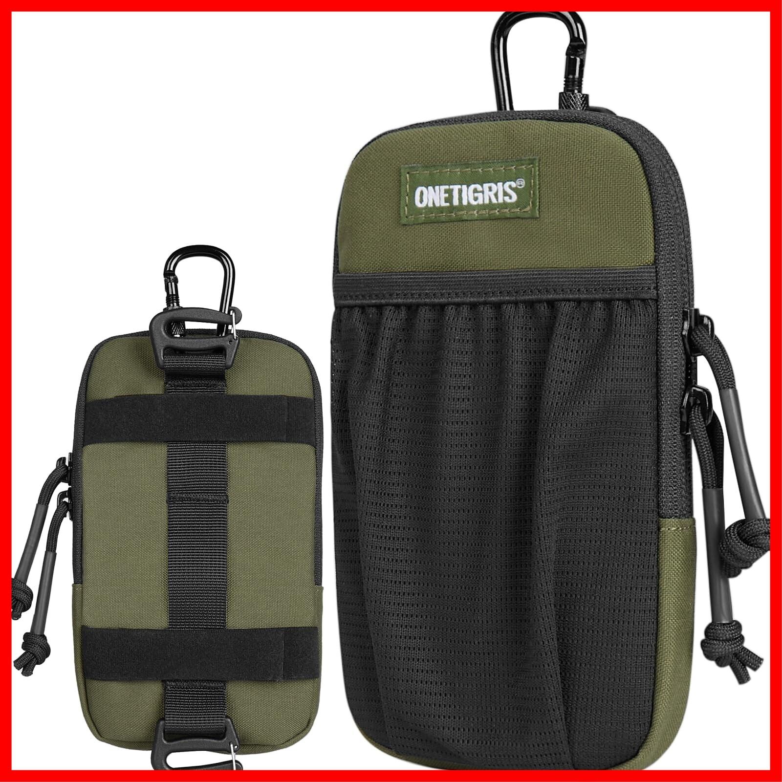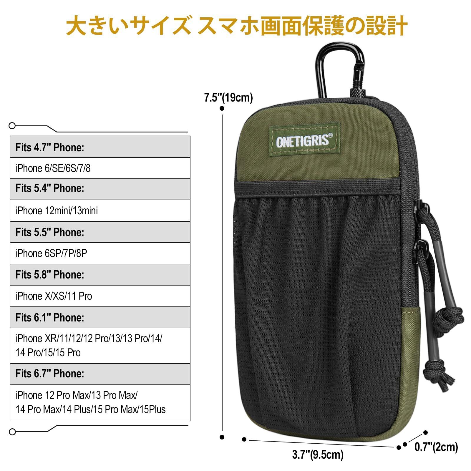 OneTigris スマホポーチ メンズ ベルト リュック 取り付け スマホ ポーチ YKK ファスナー カラビナ moll 付き アウトドア 登山 作業用 肩紐 スマートフォンポーチ リュックポーチ iphone 15 14 13 12 plus pro max Sony Galaxy Samsung スマートフォン 対応 (グリーン) | hananoki