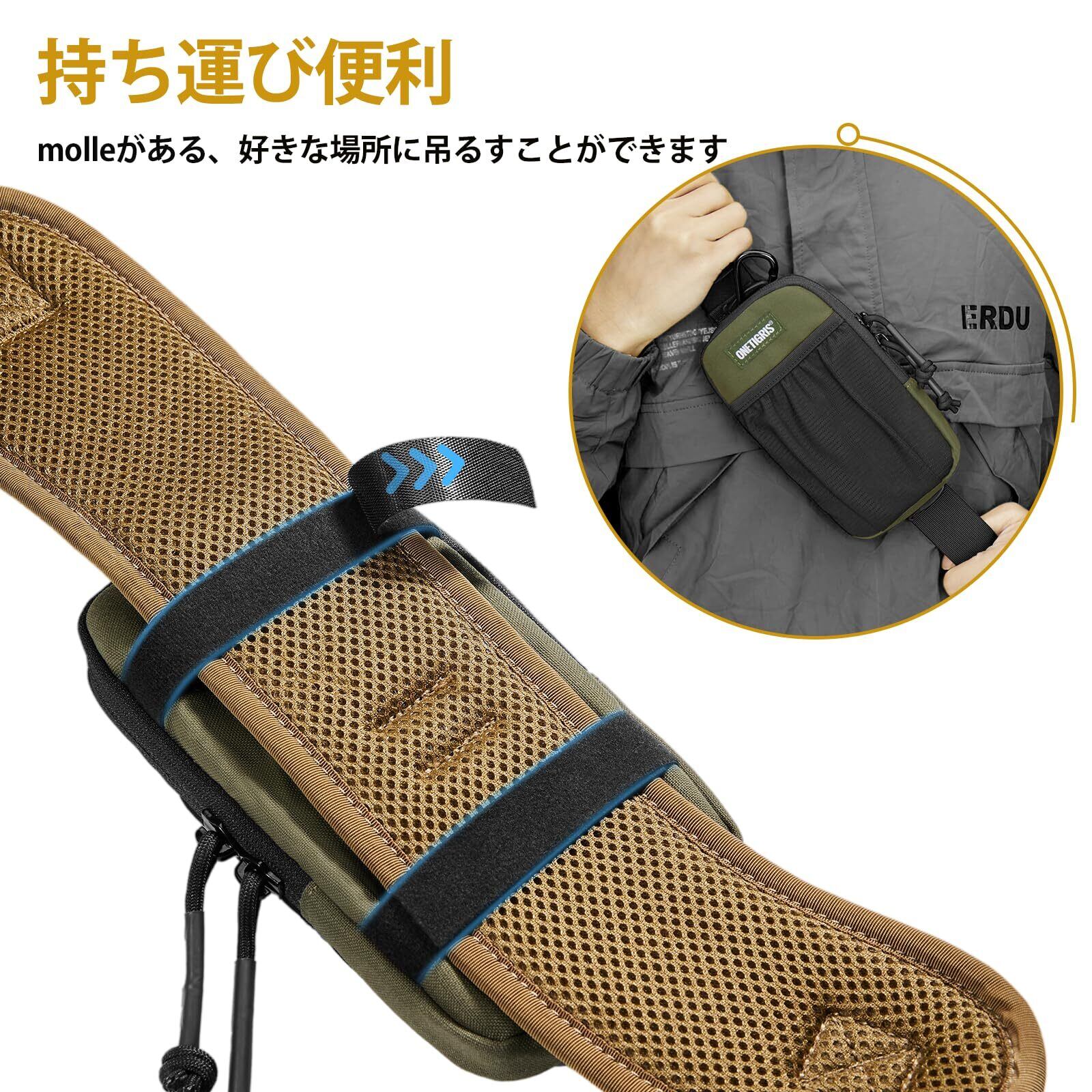 持ち運び便利:スマホぽーちには丈夫なカラビナとMOLLEシステムが装備されており、腰や肩紐、バッグに取り付けることができます。アウトドア活動中に簡単に取り出せて非常に便利です。イヤホン収納:イヤホン収納袋があり、コードを出して音楽を聴くことができ、イヤホンを紛失する心配がありません。