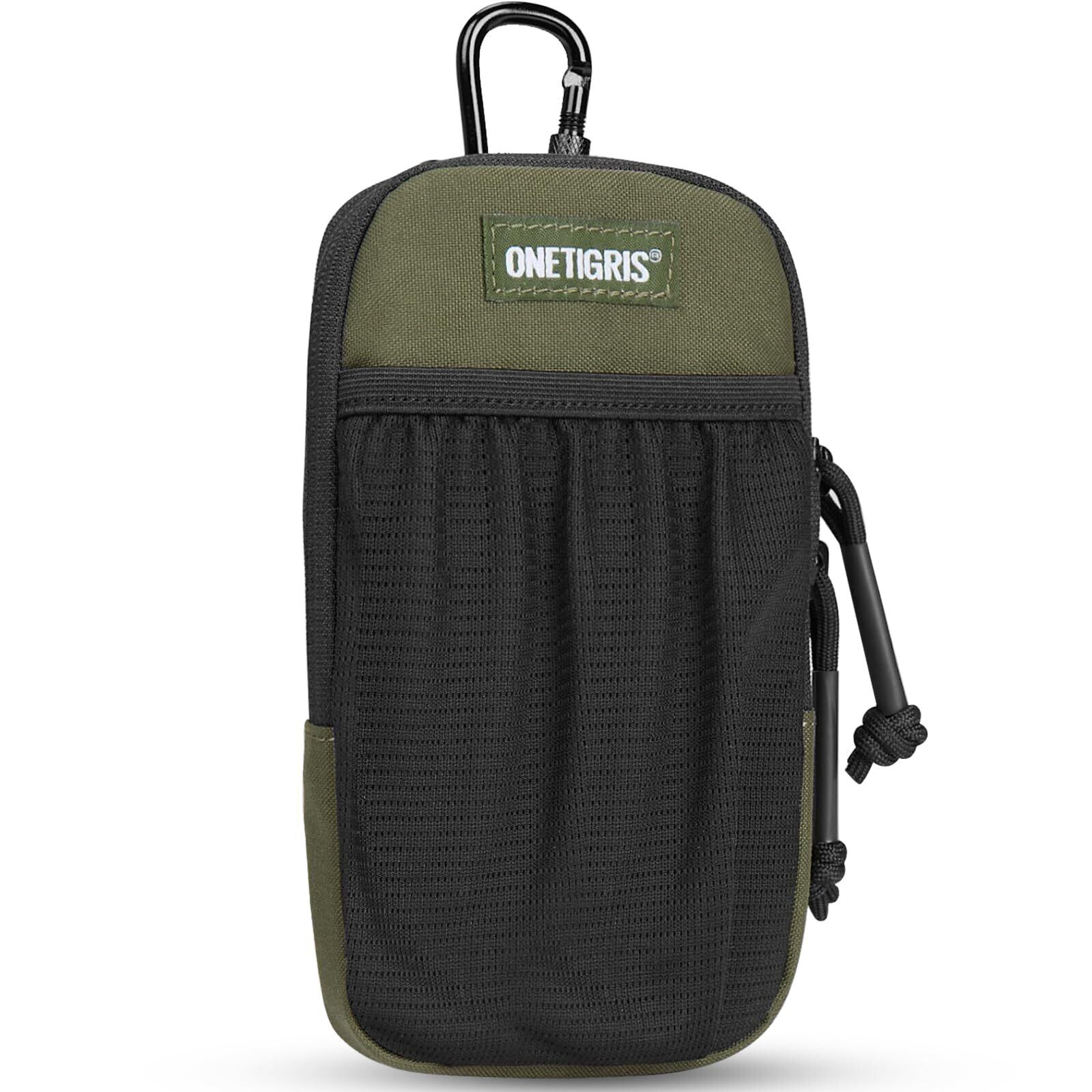 OneTigris スマホポーチ メンズ ベルト リュック 取り付け スマホ ポーチ YKK ファスナー カラビナ moll 付き アウトドア 登山 作業用 肩紐 スマートフォンポーチ リュックポーチ iphone 15 14 13 12 plus pro max Sony Galaxy Samsung スマートフォン 対応 (グリーン)