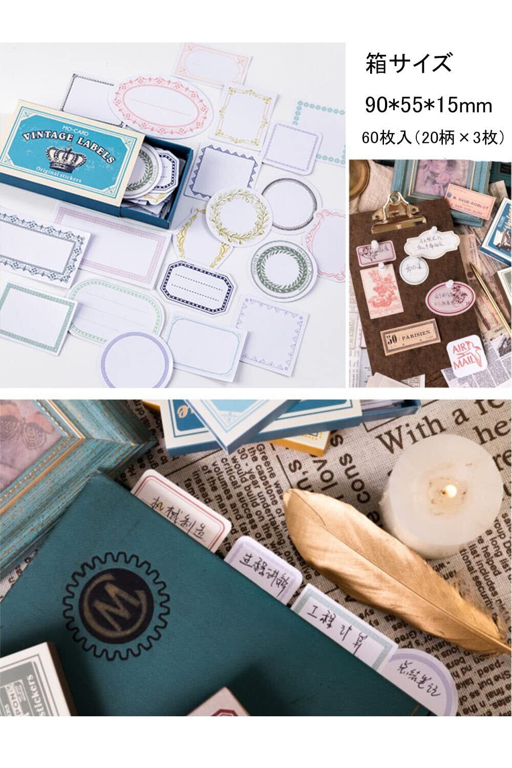 【使い方は色々】レトロな紙箱に入ったヴィンテージ風ラベルシールセットです。手帳デコ、はがき、カレンダー、日記帳、ガイド、お手紙、スマホケース、ハガキどこでも飾ることができます。