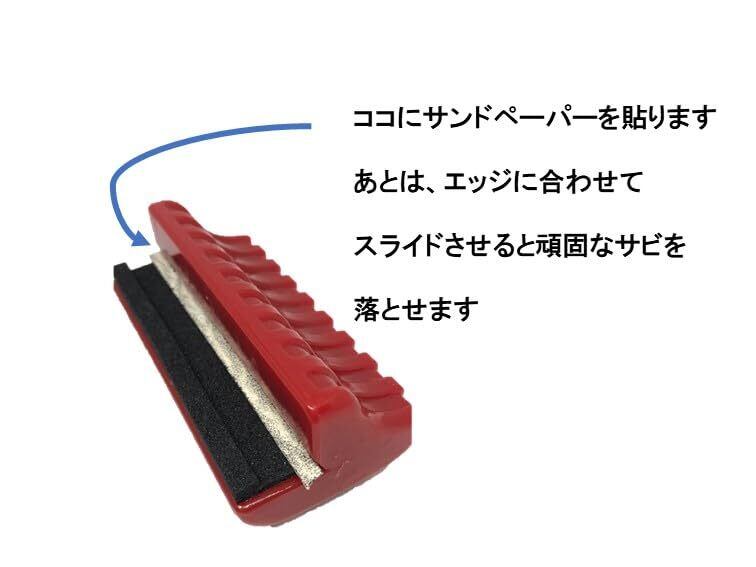 エッジの頑固なサビを簡単に落とせるサビ落とし!サンドペーパーを本体に貼ってエッジをスライドさせます。