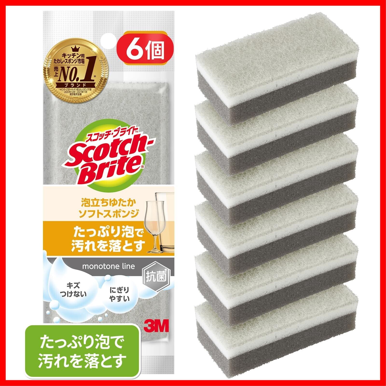 3M スコッチブライト スポンジ キッチン キズつけない 抗菌 泡立ちゆたか グレー 6個 WS-77KGY-6P