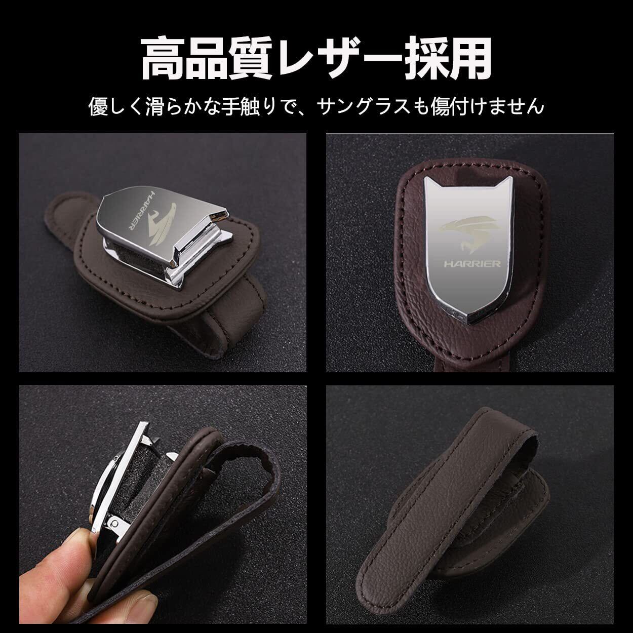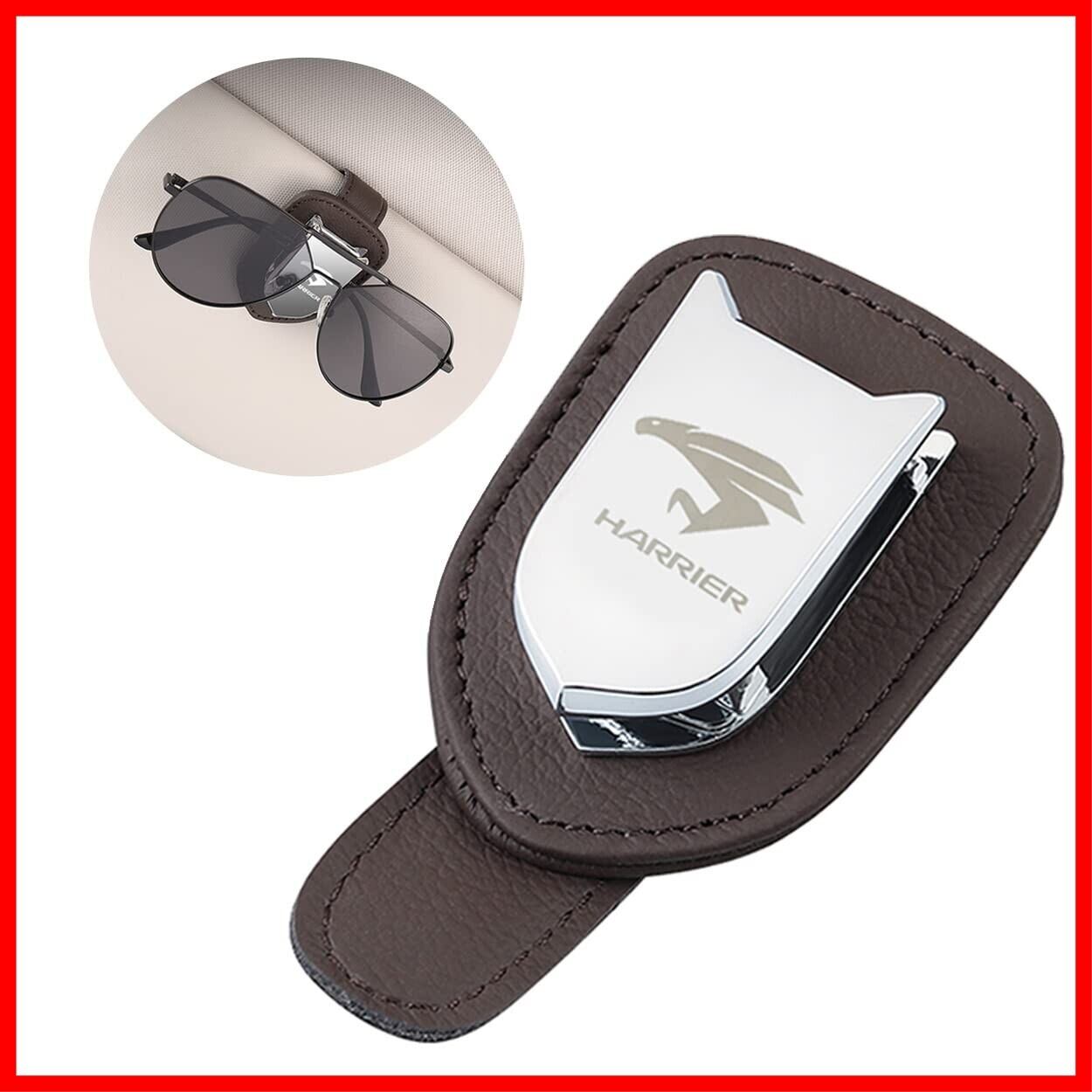 ハリアー 用 メガネホルダー レザー サングラスクリップ カーサンバイザー 用 サングラス 眼鏡 チケット カード クリップ ホルダー メガネクリップ 車眼鏡ホルダー 取り付け簡単 選べる4色 (Brown)