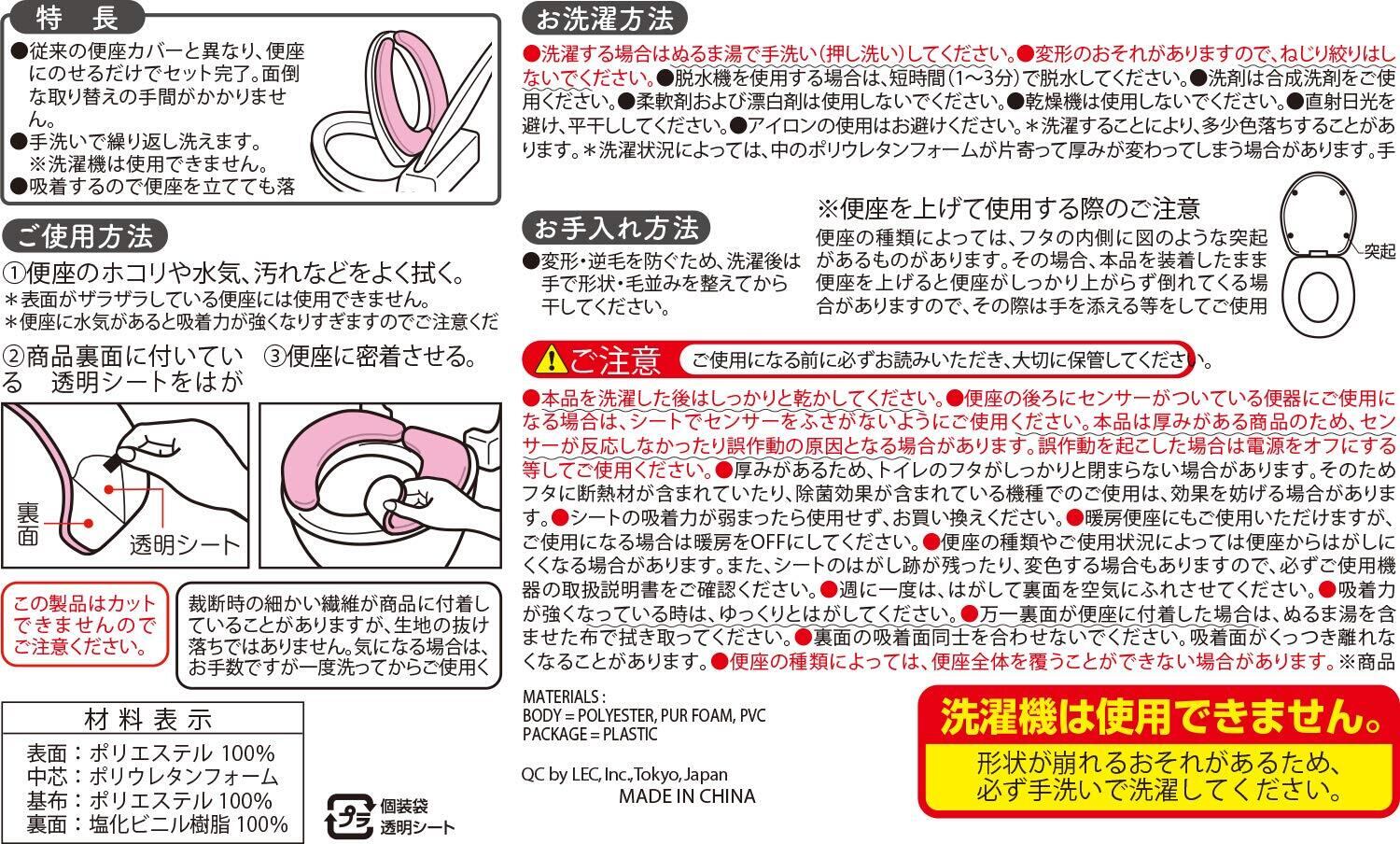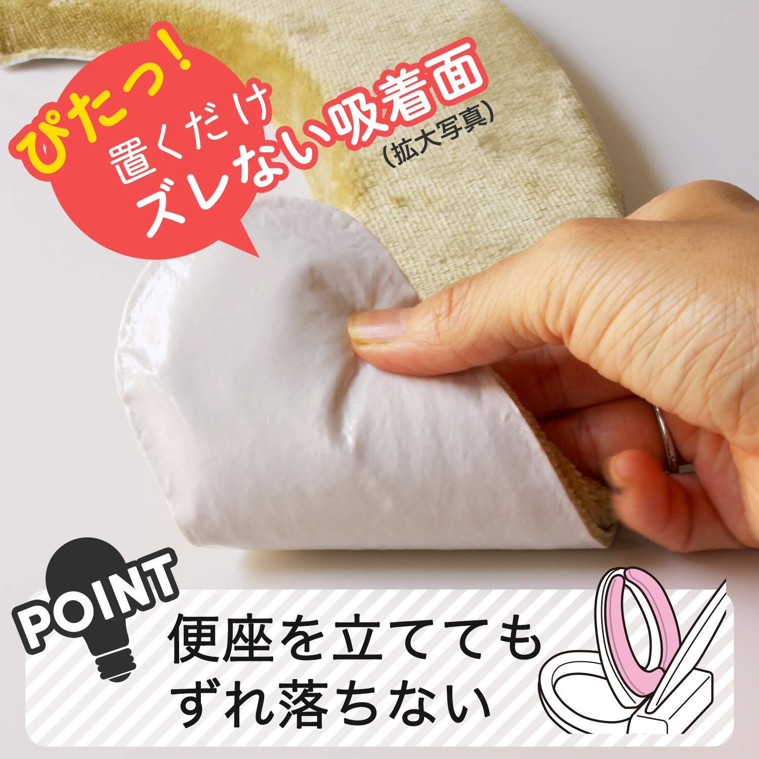 便座にのせるだけ!取りつけ簡単な吸着式便座カバー。面倒な取り替えの手間がかかりません。