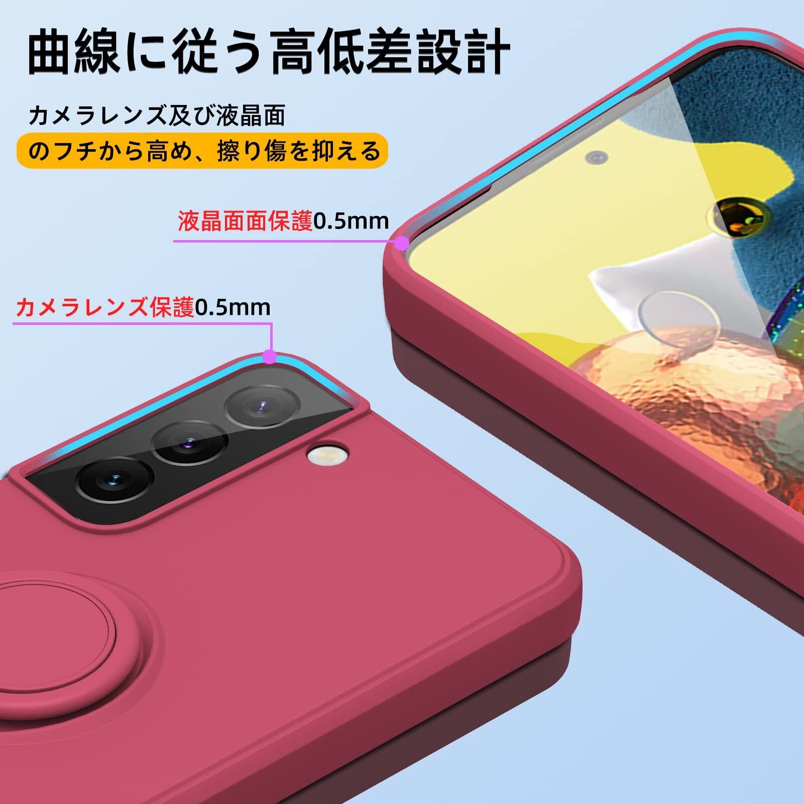 【対応機種】Samsung Galaxy S22の保護ケースです。Samsung Galaxy S22本体にぴったりフィイットするよう設計し、携帯へ負荷を掛けずに楽々装着できます。【高品質素材】ケースは高い品質の液体シリコンで作られていますので、グリップ感がとても良く滑りにくくなっています。環境に優しい、耐久性があり、放熱がよくです。柔軟性と丈夫さと美しさ備えて、変形しにくくなっています。表面処理は多層コーティングが施されているので,指紋防止、携帯電話本体への擦り傷も心配無用です。ケースの表面はツルツルでシルクのようなやさしく心地よい肌触りです。長く使用したら、万が一汚れても濡れた毛布でふき取るだけで綺麗になります。【優れた精密性】本体にぴったりフィイットするよう設計し、精巧をきわめていることの孔位で、充電するやイヤホンで音楽を聴くことにも支障なく使用でき、携帯へ負荷を掛けずに楽々装着できます。【スタンド機能】嵌め込み構造により、しっかり本体を支え揺れなし。マグネット式車載ホルダーに対応して 。ケースを横置きにするとスタンド機能になり、持たず動画鑑賞などを楽しむことができます。*特別ヒント:リング部分は磁石ですので、ワイヤレス充電できません。 ワイヤレス充電が必要な場合は、電話ケースを外してください。【アフター】30日品質期間、もしお届けした製品に何か問題がございいますたら、メールでご連絡してください。お客様からのお問い合わせ内容に応じて代替品交換や返金可能です。