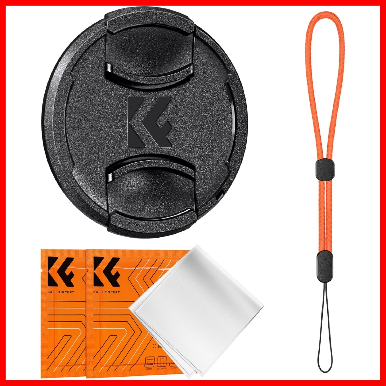 K&F Concept 82mm レンズキャップ 4点セット レンズキャップ+クリーニングクロス+紛失防止紐 レンズプロテクトキャップ インナー式 ワンタッチ