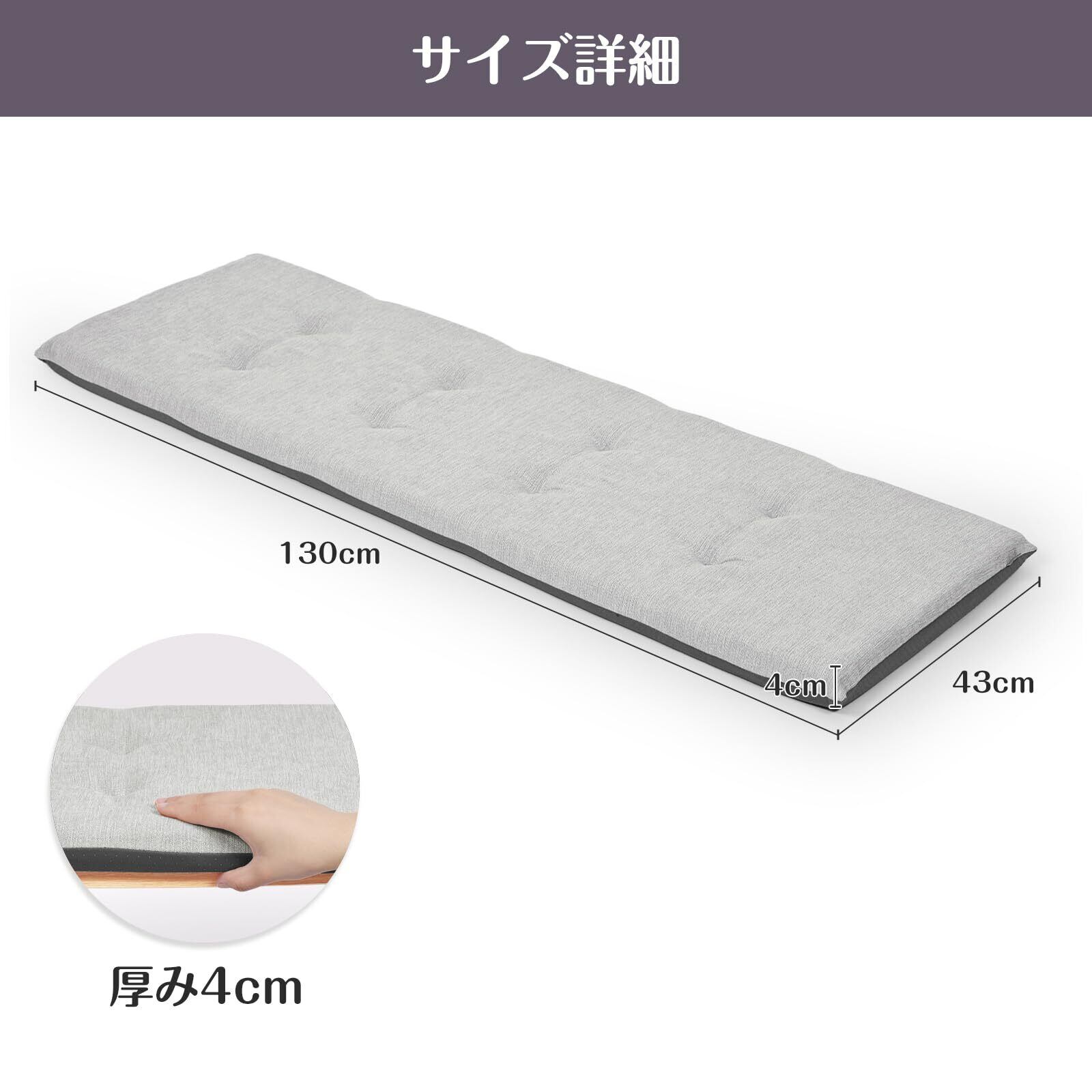 【長座布団のサイズ】:幅130×奥行43×4cm厚み 本体重量:1.0kg ✿圧縮された状態でお届け、開封してから約2~3日間ぐらい後で綺麗状態に戻ります。