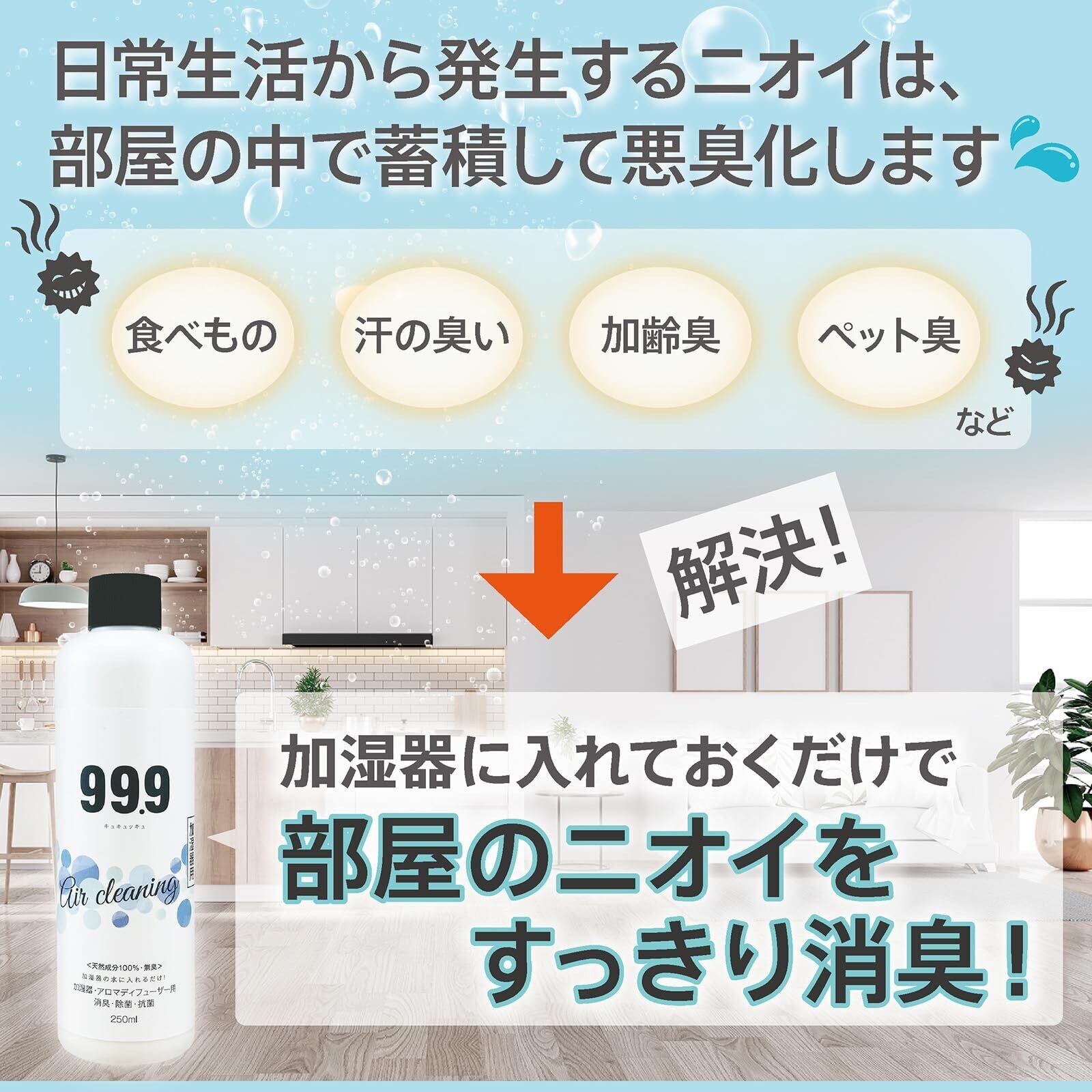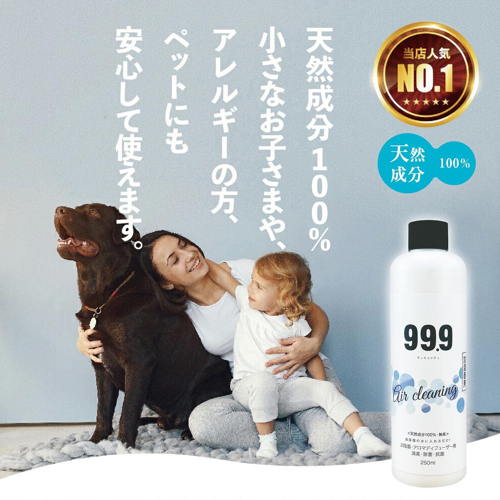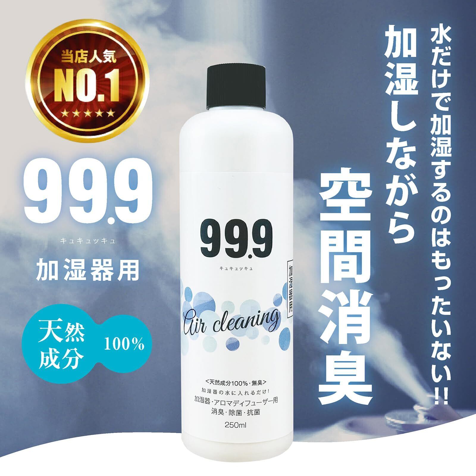【水だけで加湿するのはもったいない!】99.9加湿器用除菌消臭ウォーター250ml 希釈50回分 タンクにキャップ一杯入れるだけ 天然成分100% 国内生産 無添加 無香料 加湿機能付空気清浄機も可 タンクのヌメリ対策にも