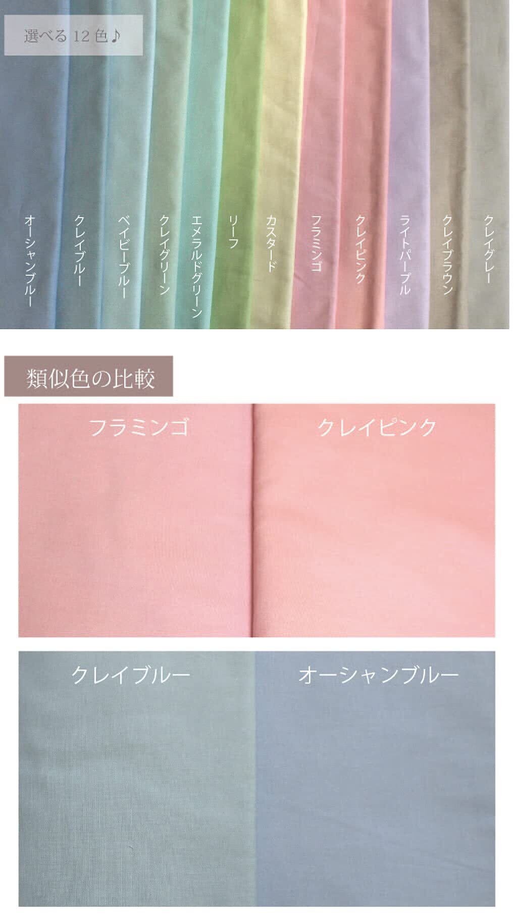 12色展開リーフ/カスタード/エメラルドグリーン/フラミンゴ/ベイビーブルー/ライトパープル/クレイグリーン/クレイグレー/クレイブルー/クレイブラウン/オーシャンブルー/クレイピンク