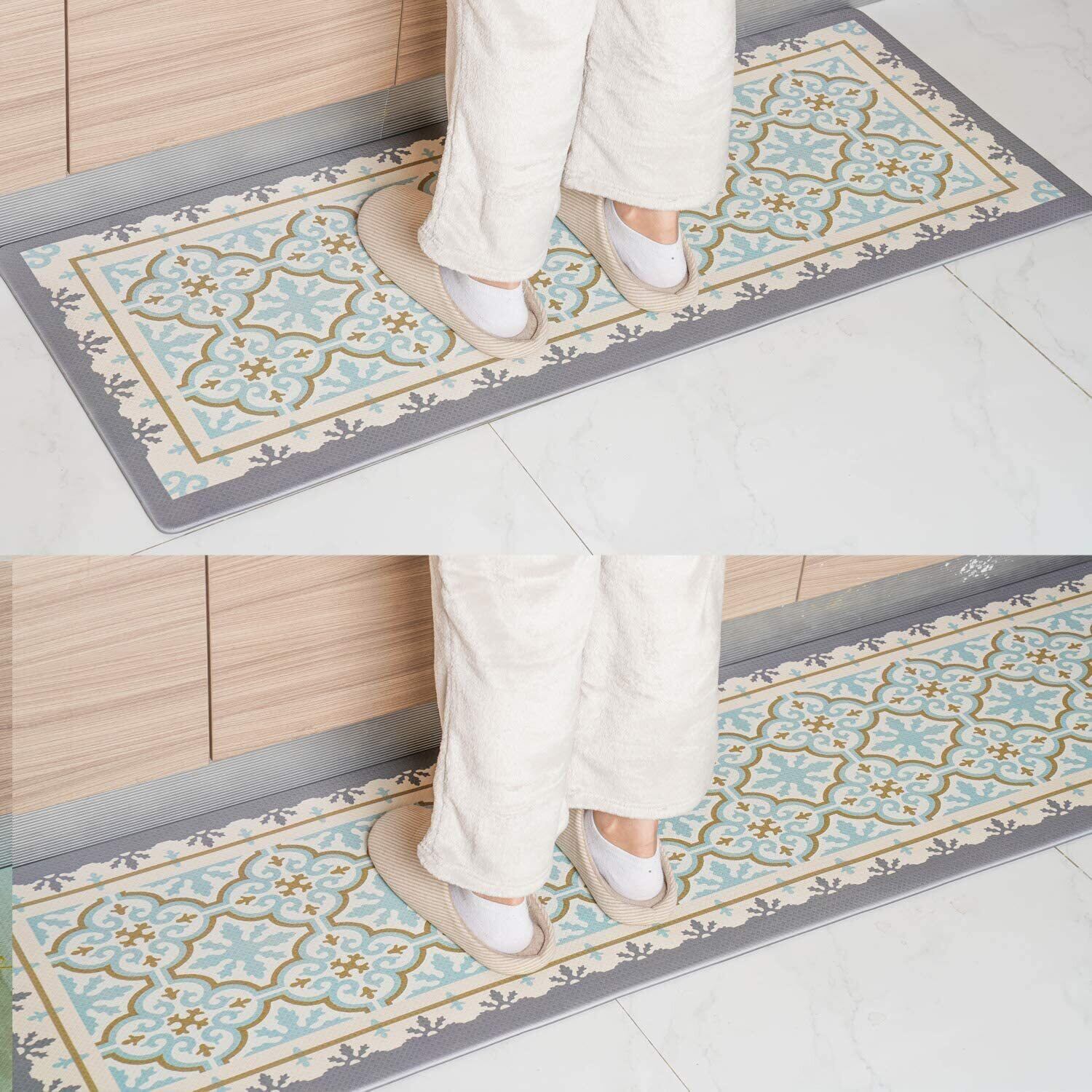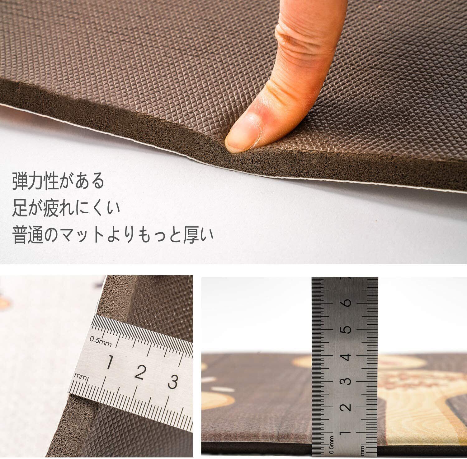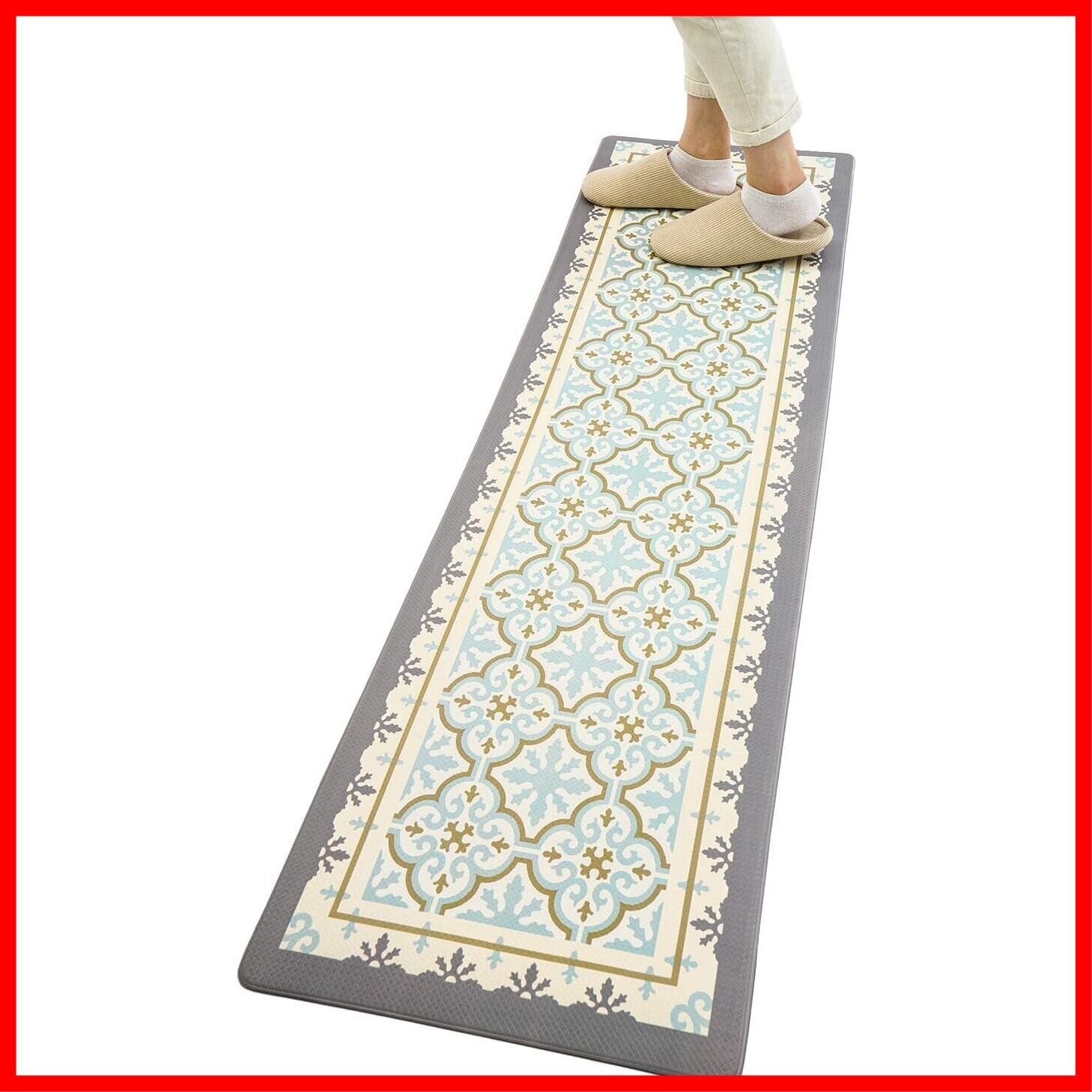 【厚いPVC】 足が疲れにく設計、もちもちの踏み心地でクッション性が高く台所マットです。長時間の立ち仕事も疲れにくい。このマットは素足でも、スリッパを履いたままでもいいです。物が落下しても衝撃を吸収し、床をキズやヘコミから守ります。