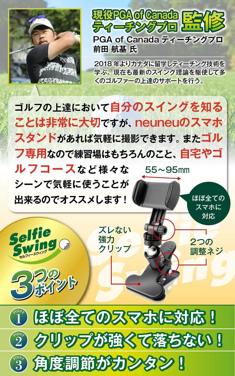 ゴルフ練習器具 【PGAプロ監修】 ゴルフ スマホ スタンド ホルダー スイング 【ガッチリ固定・強力クリップ】 neuneu