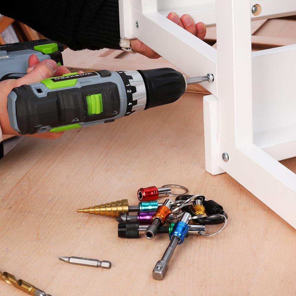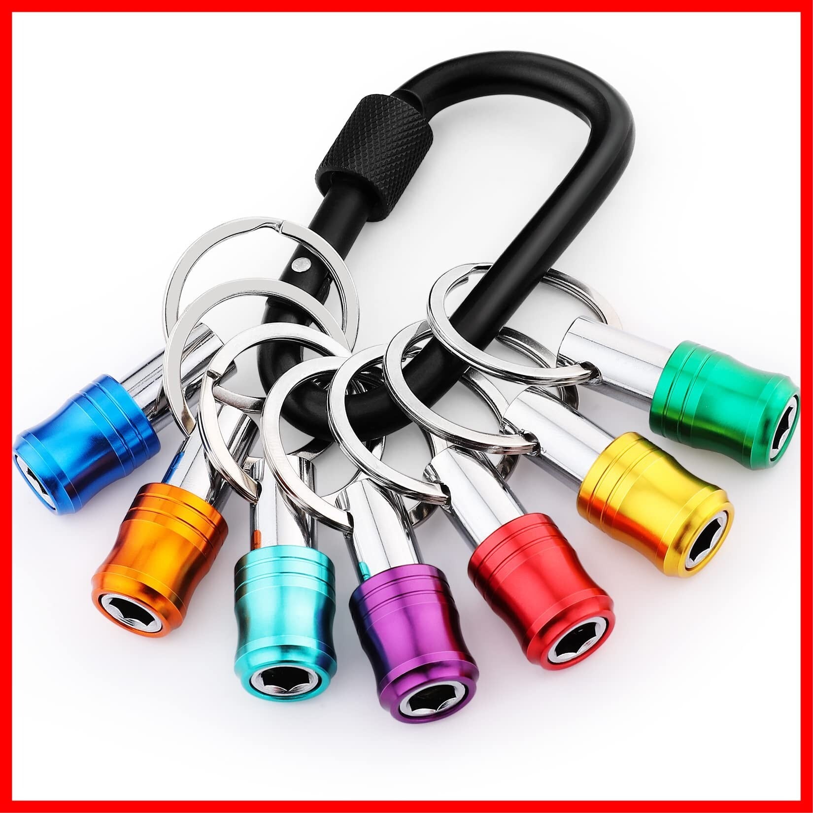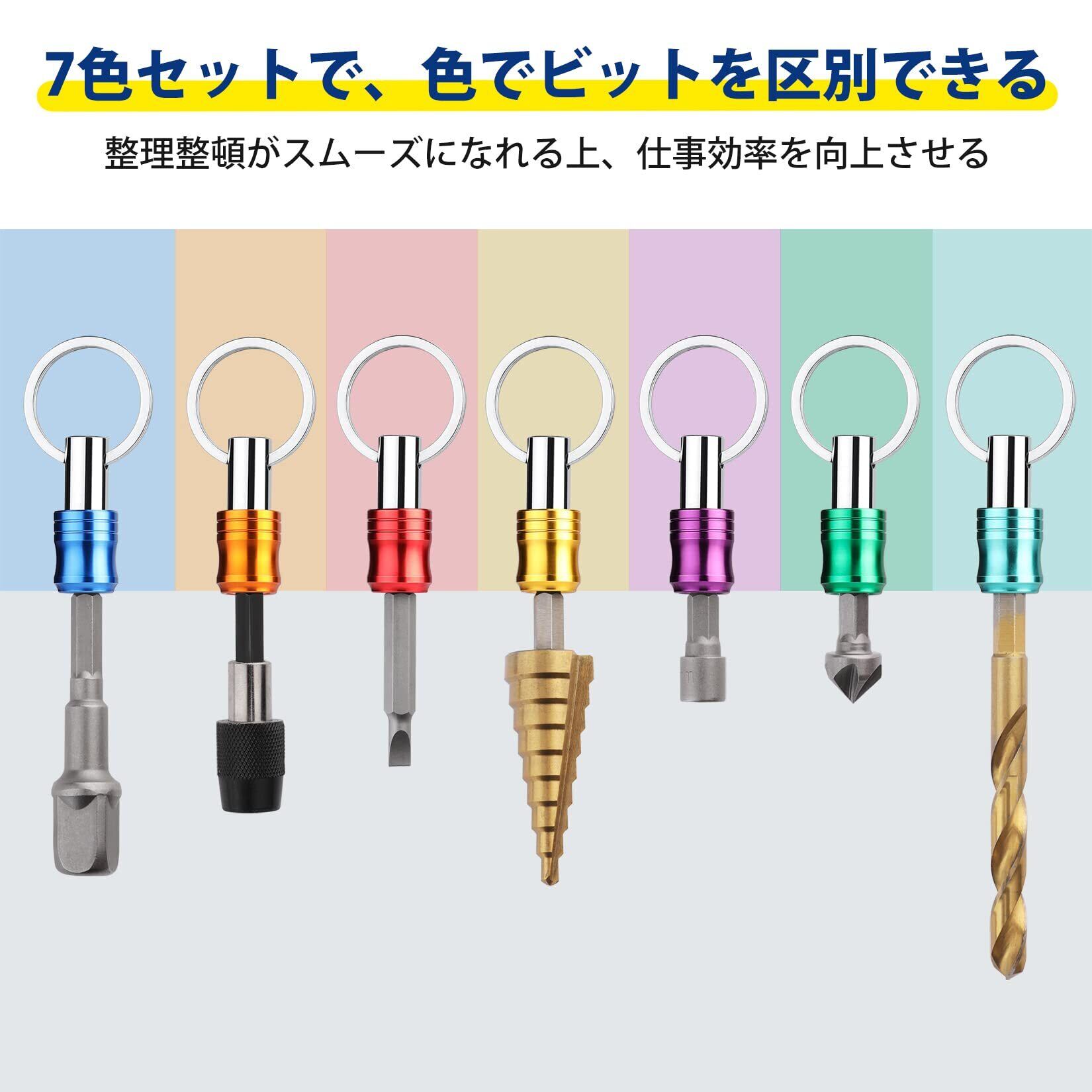 WORKPRO ビットホルダー ソケットホルダー ドライバービットセット 7色セット アルミ二ウム合金材質 色識別 キーホルダー固定 軽量 携帯用 収納