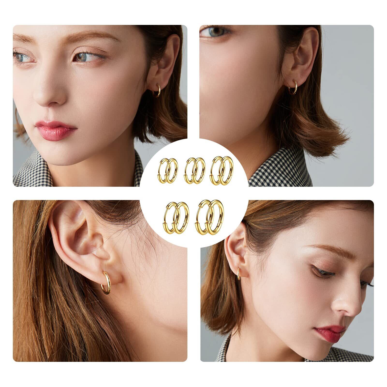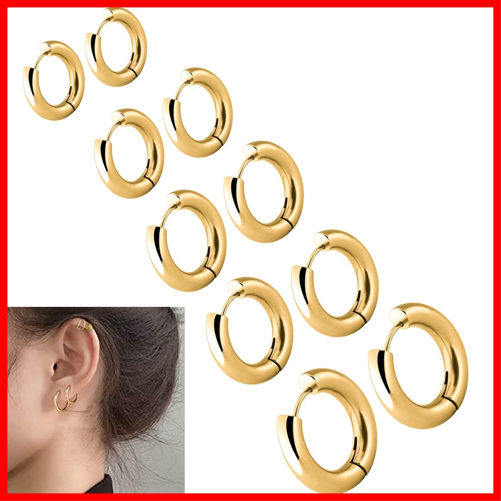 [] フープピアス【5ペア】 メンズ レディース ピアス 両耳用 リングピアス 金属アレルギー対応 人気 エレガント アクセサリー サージカルステンレス 男女兼用 ゴールド (サイズ10mm-12mm-14mm-16mm-18mm、幅2.5mm)