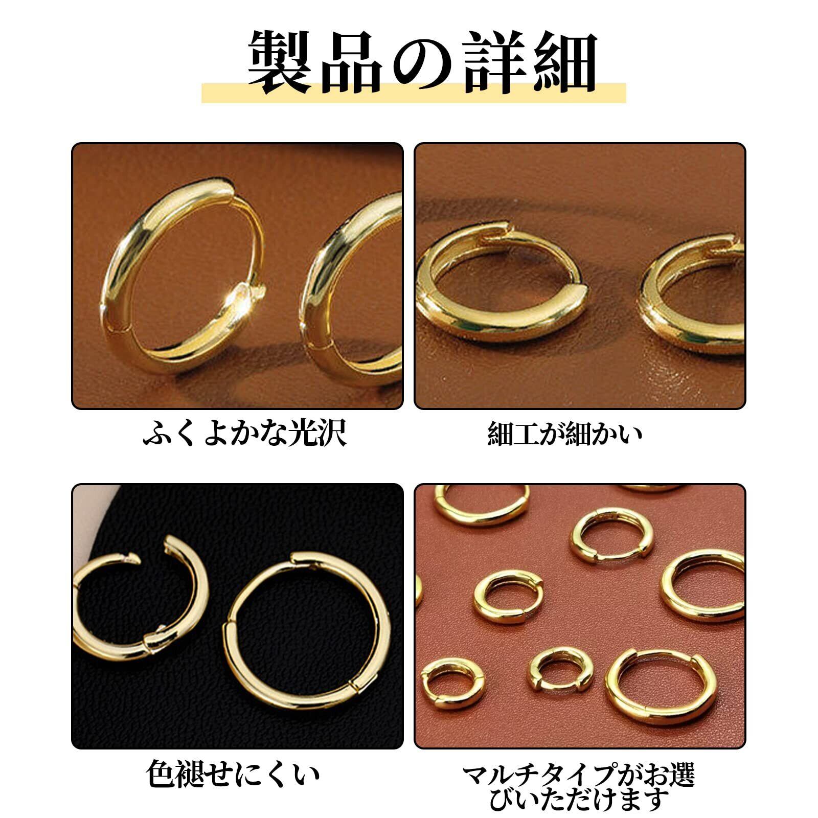 【シーン】定番のリング型のフープピアスです。男女兼用のフープピアス、シンプルなデザインで、日常 デート パーティー等、色々なファッションに合わせることができます。5サイズからお選びいただけますので、様々なシーンで使い分けることができます。ピアス ゴールド エレガントアクセサリーフープピアス 金属アレルギー対応
