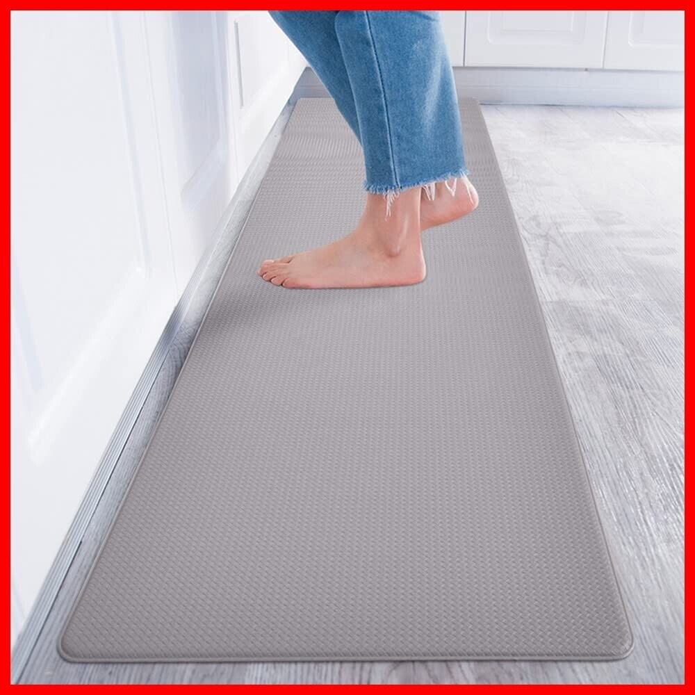 Baibu Home キッチンマット 拭ける 厚さ8mm 踏み心地いい フカフカ グレー 120 はっ水 防汚 低反発 クッション 洗濯いらず 台所 さっと拭くだけ