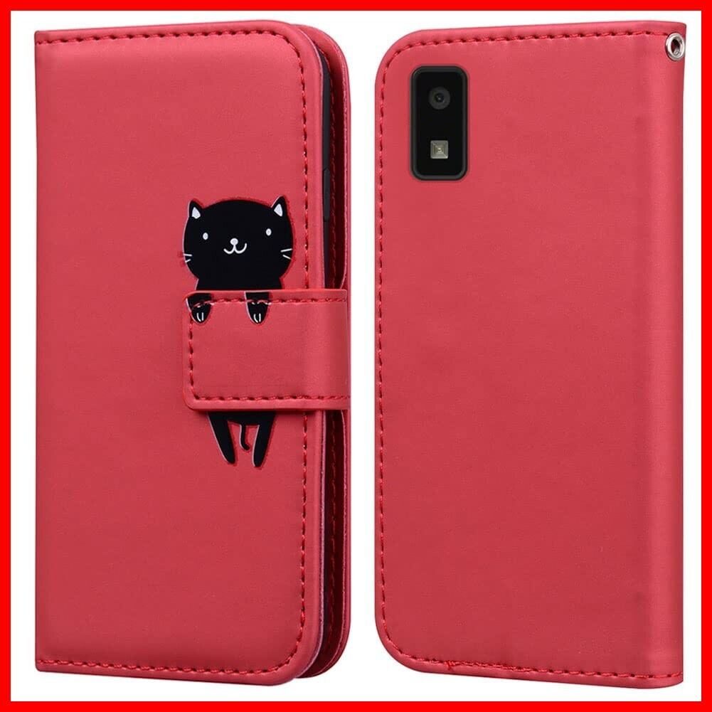 ALSDKEZI 対応 AQUOS wish/wish 2 ケース 手帳型 AQUOS Wish SHG06 A104SH SH-M20/AQUOS Wish 2 SH-51C A204SH カバー 暗赤色 女性 人気 PUレザー 財布型 可愛いカバー 黒猫 かわいい 動物 耐衝撃保護ケース スタンド機能 カード収納 スマホケース(ダークレッド/Dark Red) | hananoki