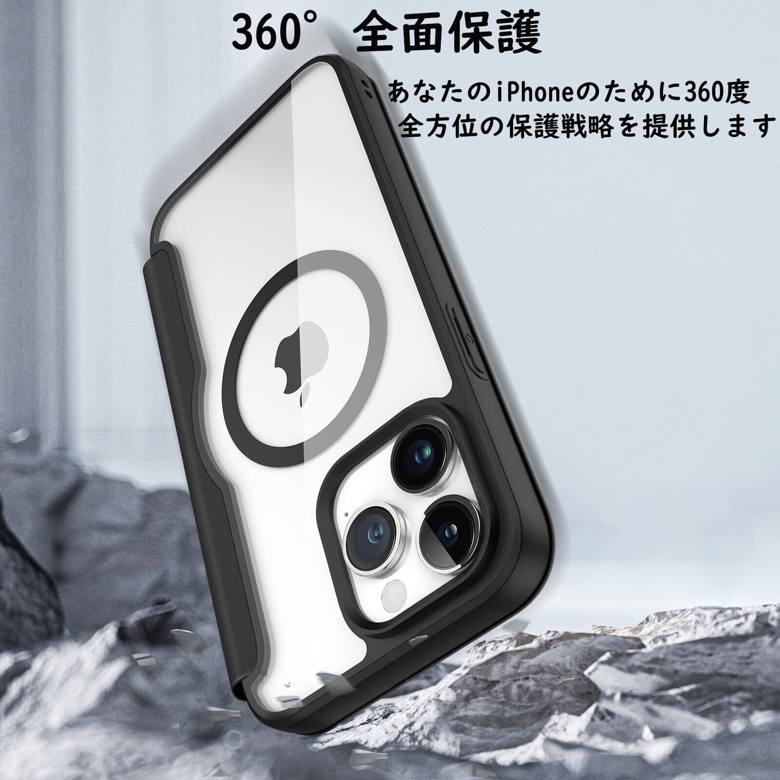 【対応機種】:iPhone15pro (6.1インチ)専用 背面 クリア手帳型レザーケース合皮、男女兼用。◆大人気進化◆強力なマグネットのリング搭載しているので、MagSafeに対応し、置くだけで簡単にのワイヤレス急速充電を提供します。※必ず対応モデル名を確認してください。