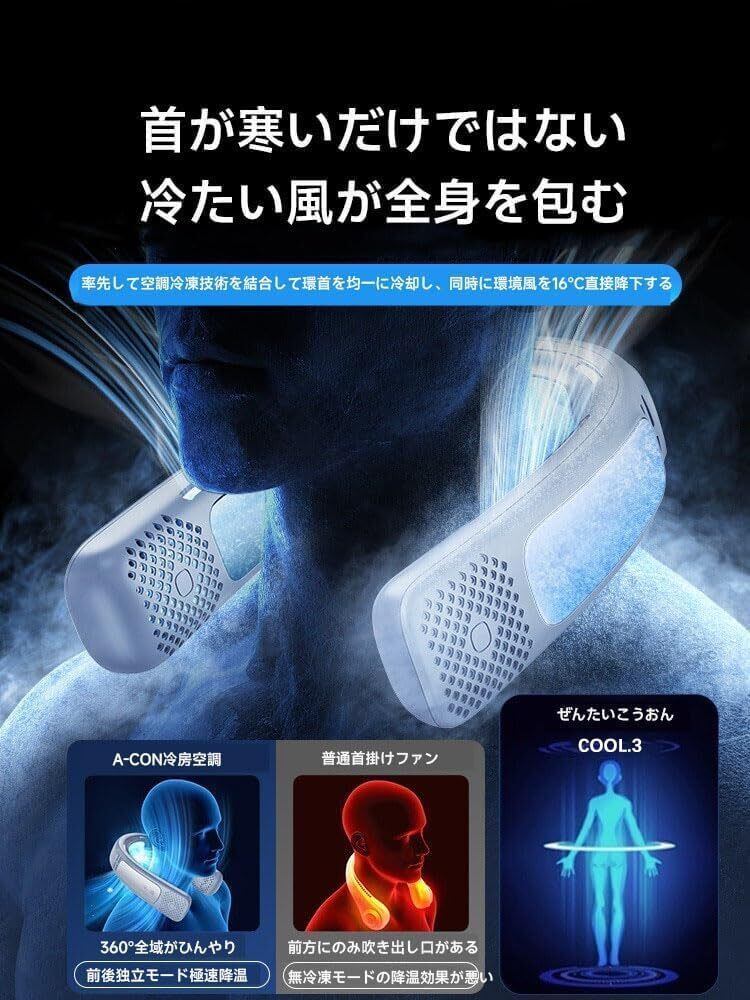 【爆発的な冷却能力!いつでも最高!】YAYAMIYAは、高効率なデュアル半導体冷却プレート設計を採用し、パワフルで瞬時に冷たく、数秒で体感温度を16°Cも下げることができます。また、HyperVortexエアフロー技術を採用し、顔と首をよりよく冷やし、爽やかな冷風を広く伝えます。この先進的なNTCスマート温度制御技術により、一定の温度で冷たさを提供し続け、いつでも炎天下から逃れることができます。首掛け扇風機を身に着ければ、いつでも最高のパフォーマンスを発揮でき、屋外活動をより楽しいものにします。