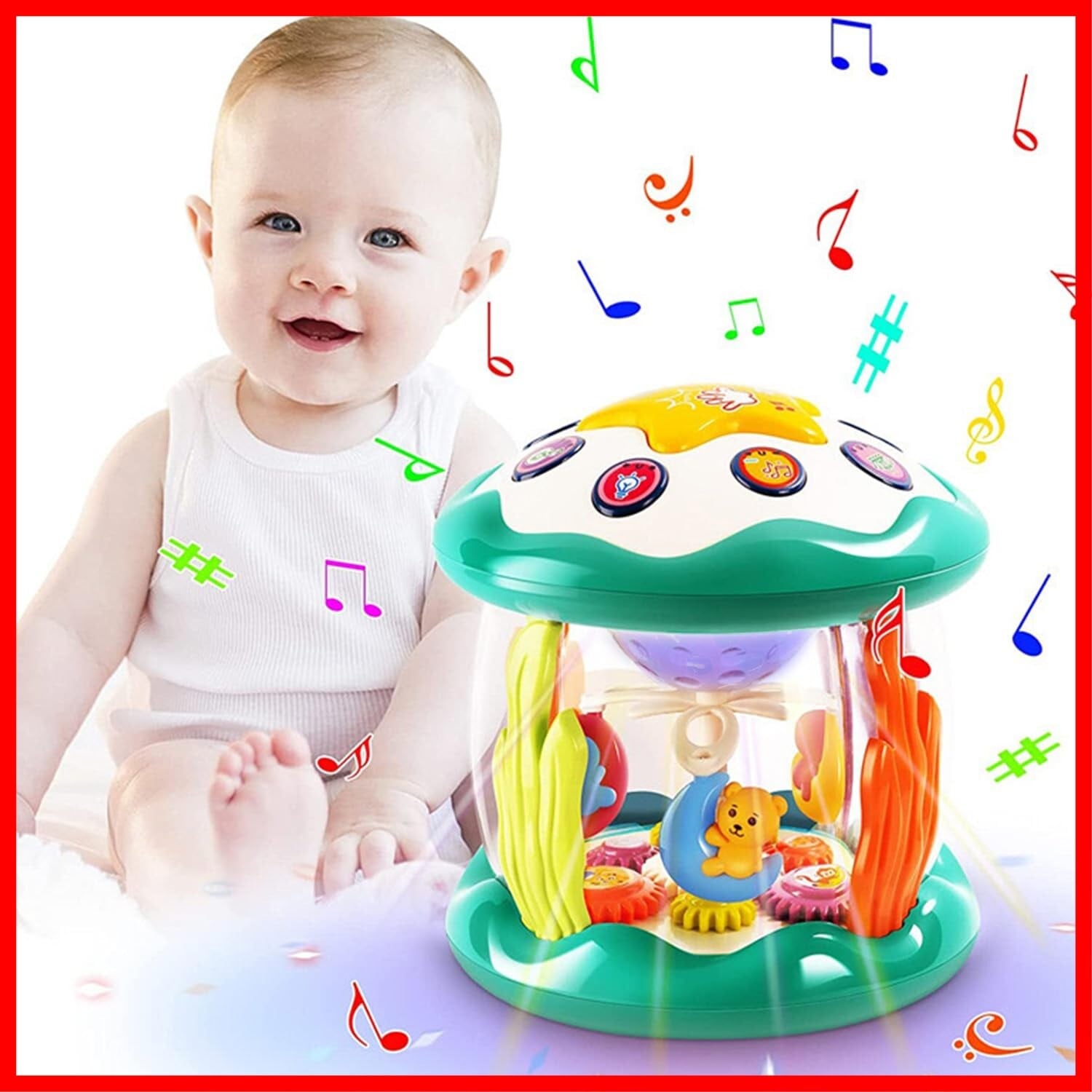 TENGEE おもちゃ 楽器 知育玩具 1歳2歳3歳 ドラム 音楽おもちゃ 人気ランキング 7色回転ライト 10曲メロディ 8種類楽器効果音 女の子 男の子 誕生日プレゼント クリスマス 出産祝い | hananoki