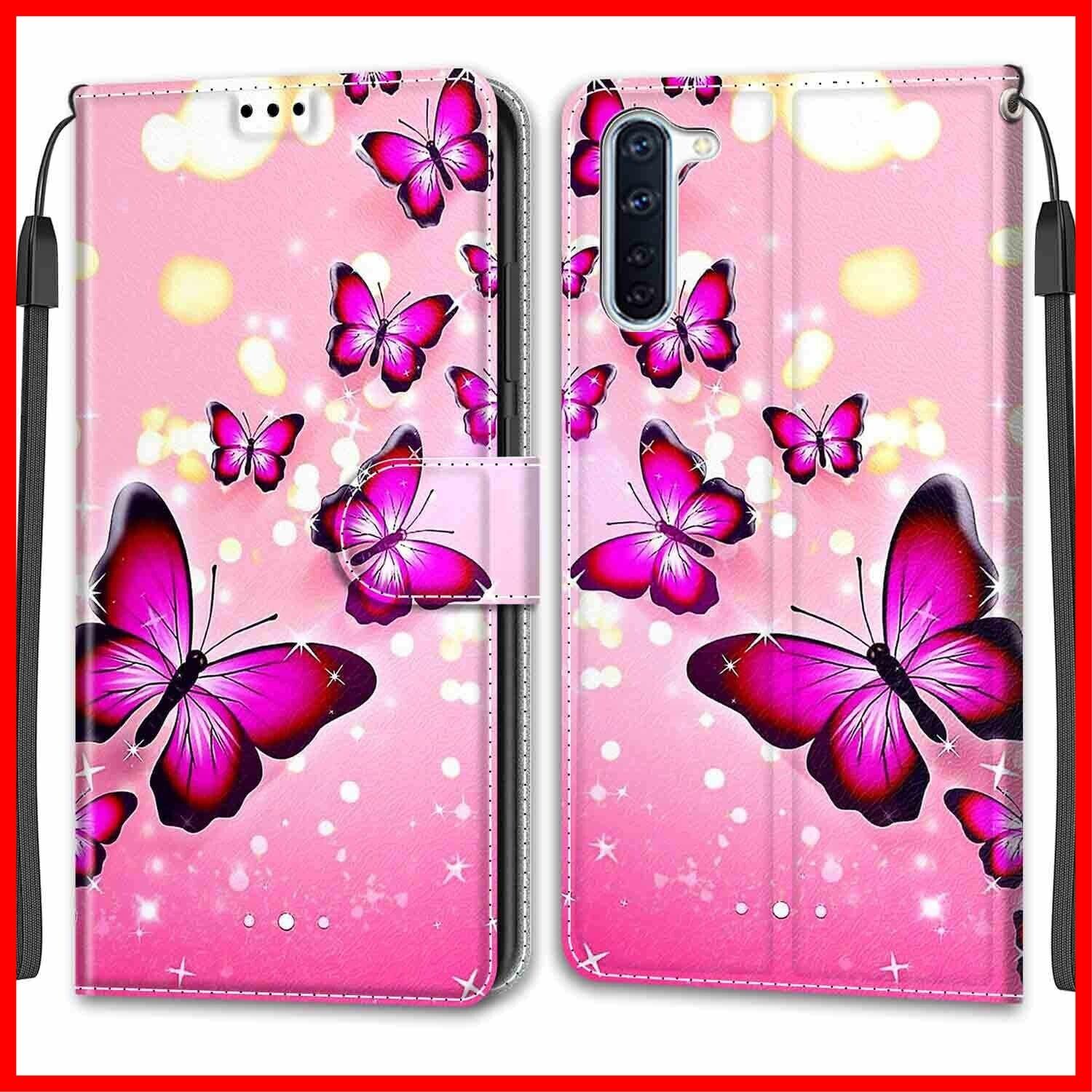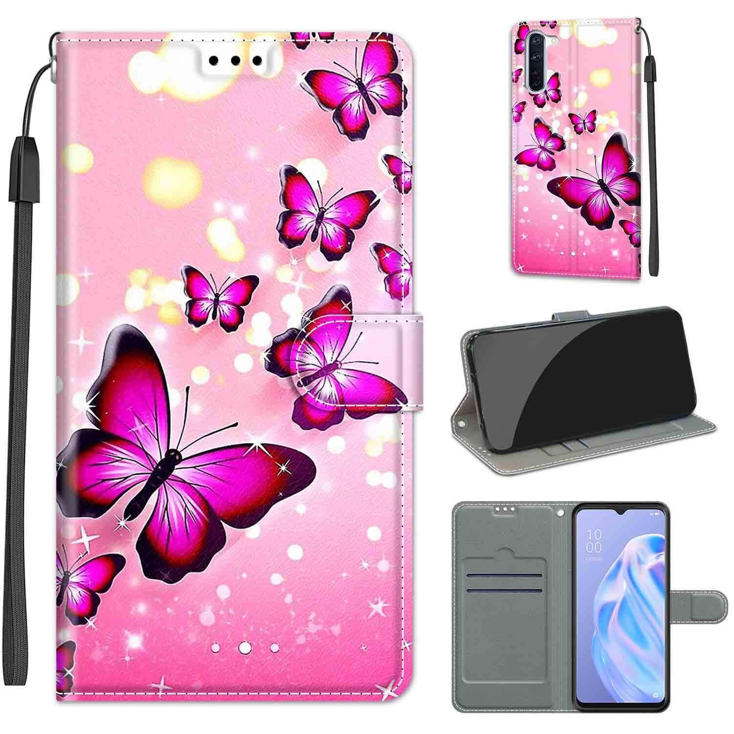KENHONER Oppo Reno3 A ケース 手帳型 対応 カバー PUレザー カード収納 財布型 耐衝撃 ケース マグネット スタンド機能付き 10色 (Oppo Reno3 A ケース 手帳型) (ピンクの蝶)