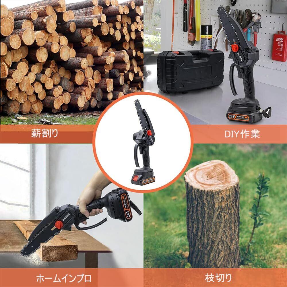 【優れた切れ味】: 木製の歯のデザインが枝にしっかりと食い込み、効率的かつスムーズに切断できます。高硬度のカービングチェーンは非常に耐久性があります。