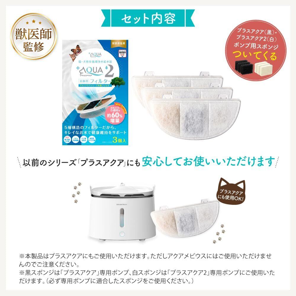 獣医師監修 プラスアクア交換用純正フィルター (5層ろ過構造&ぬめり軽減タイプ) 3個入 猫 犬 給水器 安心の日本 サポート 対応機種 WF06 WF03 CF20 WF20 (3)