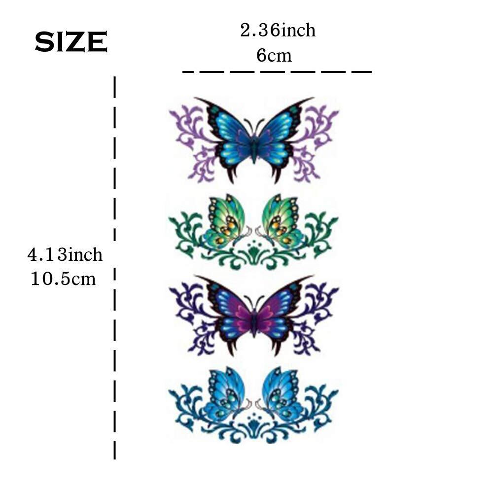 Yesallwas タトゥーシール 蝶 青 長持ち 6枚セット 入れ墨シール 蝶々 タトゥー ブルー 刺青シール バタフライ タトゥーステッカー ボディーシール 防水 (蝶))