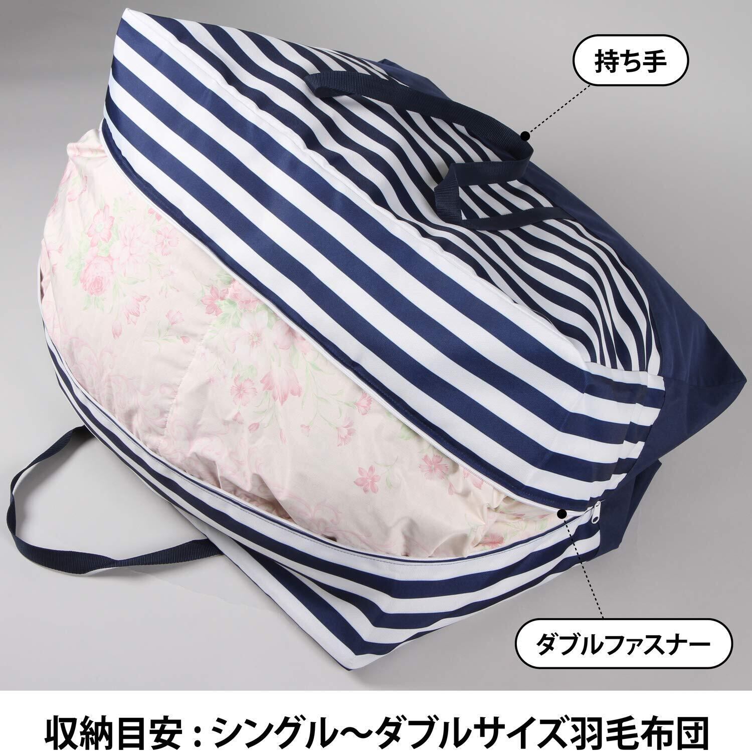 アストロ 収納ケース 羽毛布団用 シングル・ダブル兼用 大型 ネイビー ボーダー 洗える ボストンバッグ 大容量 820-12 大