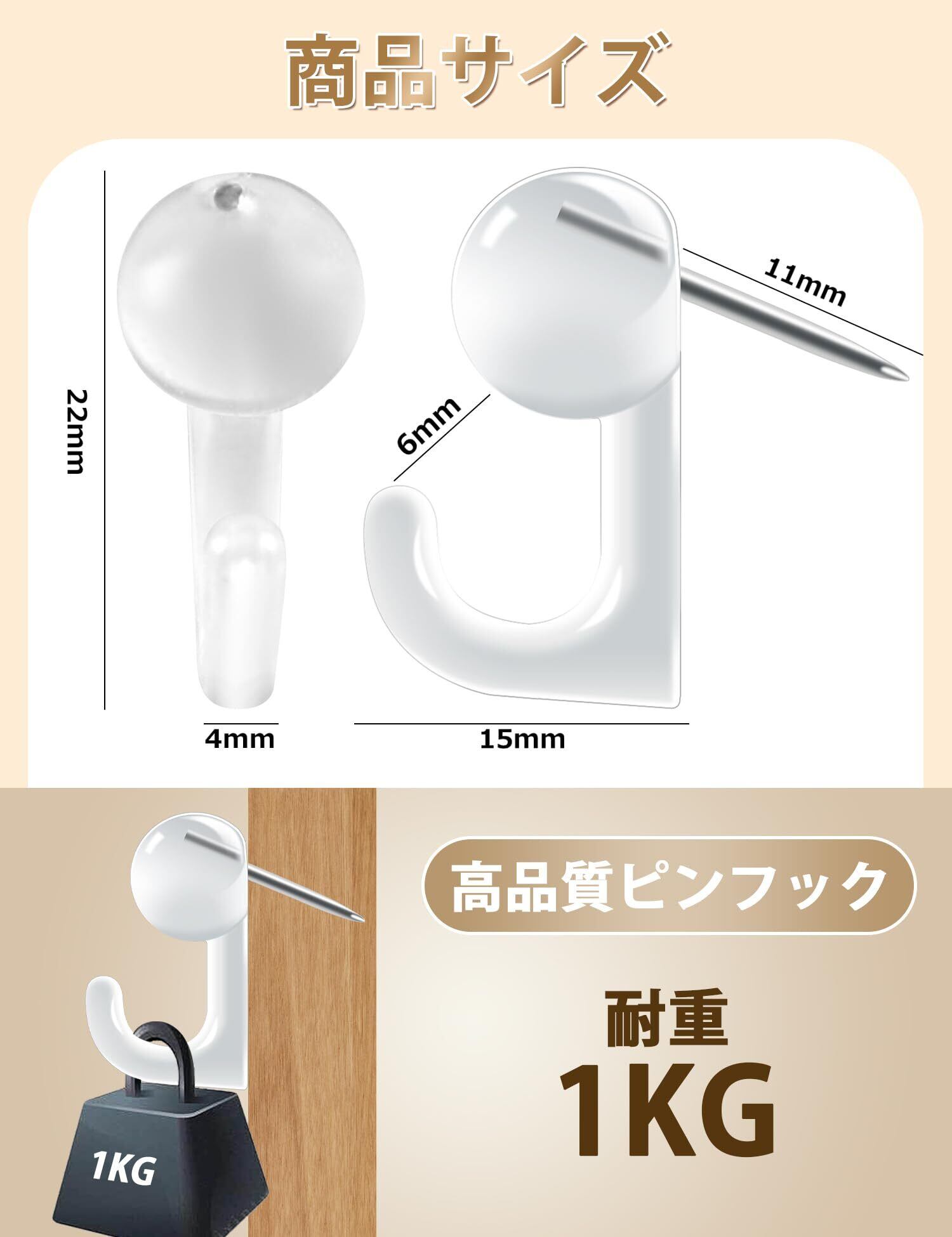【デザイン&材質】ピンフックは斜めに刺さるデザインなので、工具を使わずに固定できます。物を壁に安定して固定し、簡単に落ちません。钉フックは高品質の透明プラスチック製です。 耐久性・耐食性に優れ、劣化を防ぎます。 長く繰り返し使えます。