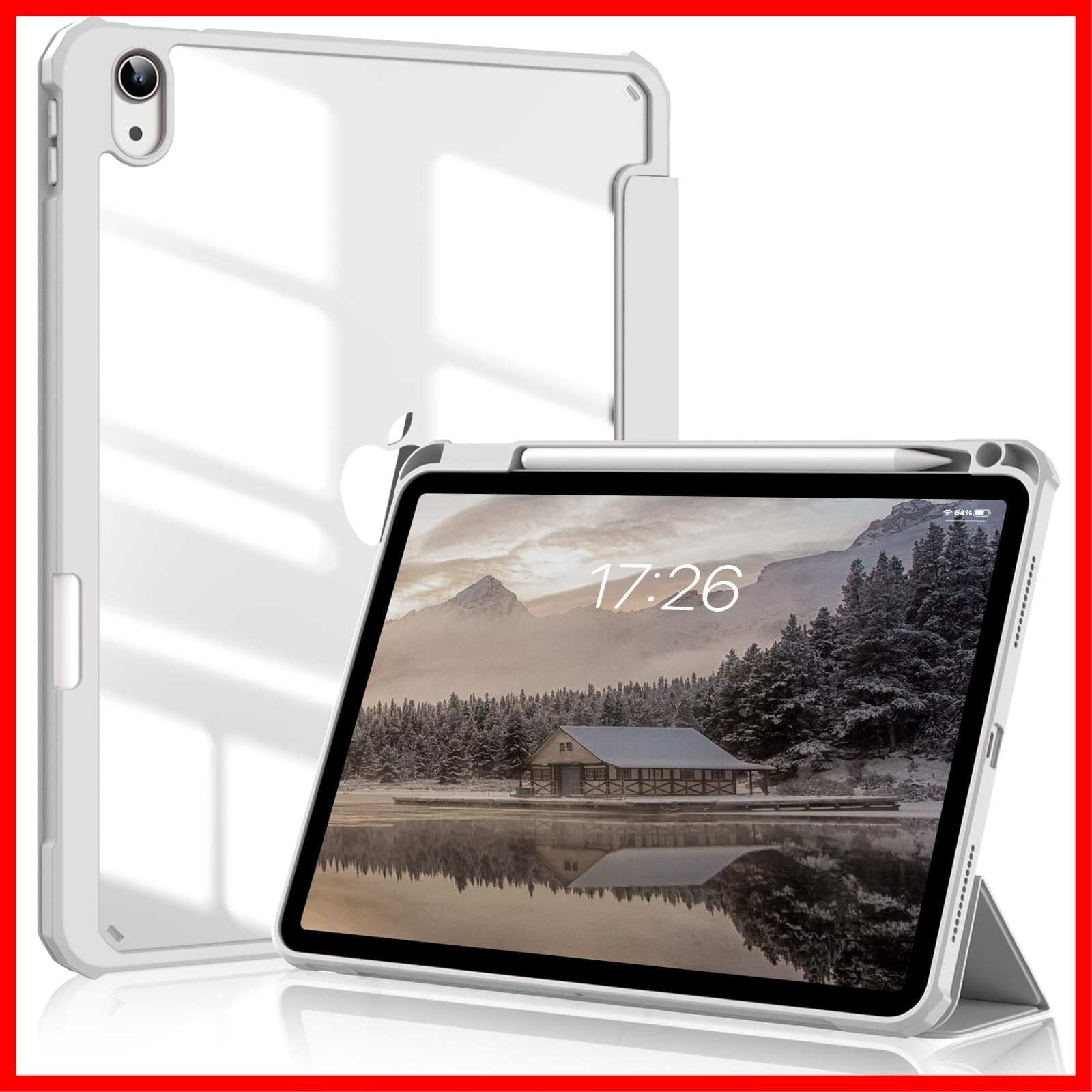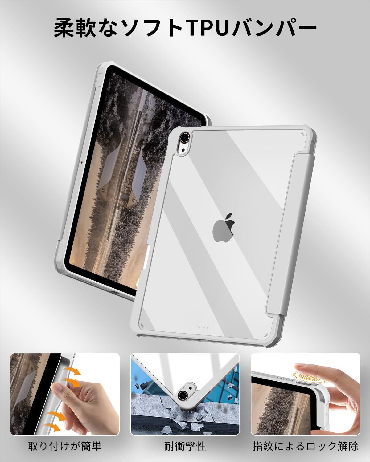 SQBEBS iPad 11世代 ケース A16 (2025) iPad 第11/10世代 10.9インチ (2022) 透明バックカバー ペンシルホルダー付き 三つ折りスタンド Touch IDとオートスリープ機能対応 軽量 薄型 傷つけ防止 PU合成レザー TPU グレー