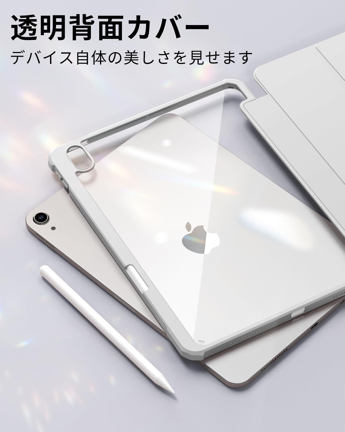 SQBEBS iPad 11世代 ケース A16 (2025) iPad 第11/10世代 10.9インチ (2022) 透明バックカバー ペンシルホルダー付き 三つ折りスタンド Touch IDとオートスリープ機能対応 軽量 薄型 傷つけ防止 PU合成レザー TPU グレー | hananoki