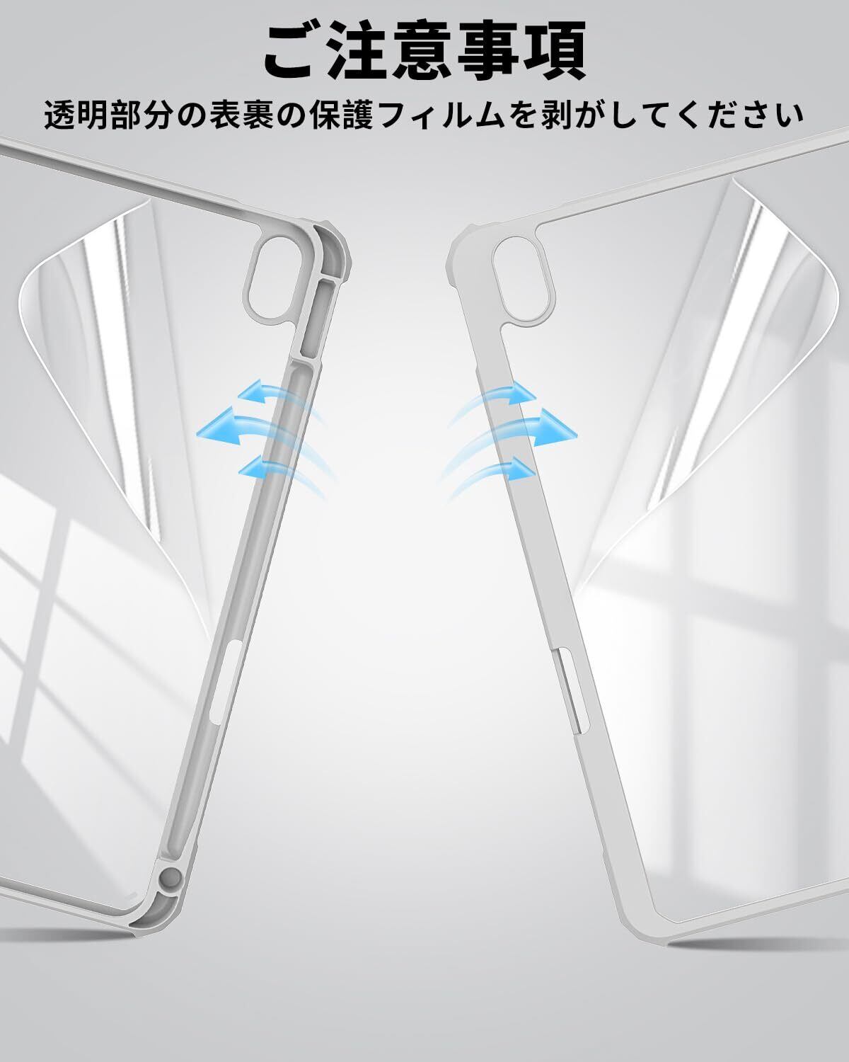 【透明な背面カバー】表面はPUレザー素材で作られ、裏面は透明なアクリル素材で作られ、デバイス自体の美しさを見せます。フレームには衝撃に強い柔軟なTPUを採用し、軽量かつ極薄で、四隅にクッション性のあるソフトフ、落下によるダメージを防ぎます。 (注意: 透明バックカバーの内側と外側に傷防止保護フィルムの層があります。使用前に保護フィルムを剥がしてください)