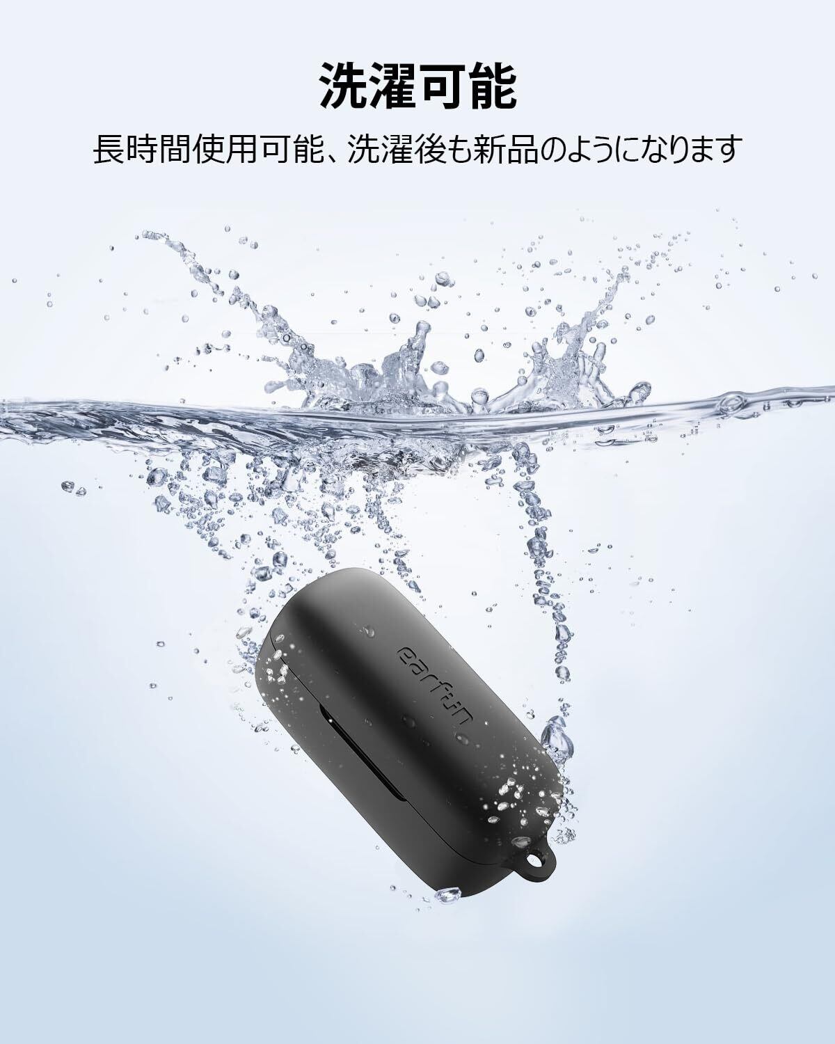 【EarFun正規品】For EarFun Free Pro 3ケース保護カバー シリコン/装着充電可能/全面保護 落下・キズ防止/耐衝撃/防塵/軽量/収納/カラビナ付き (ブラック) | hananoki