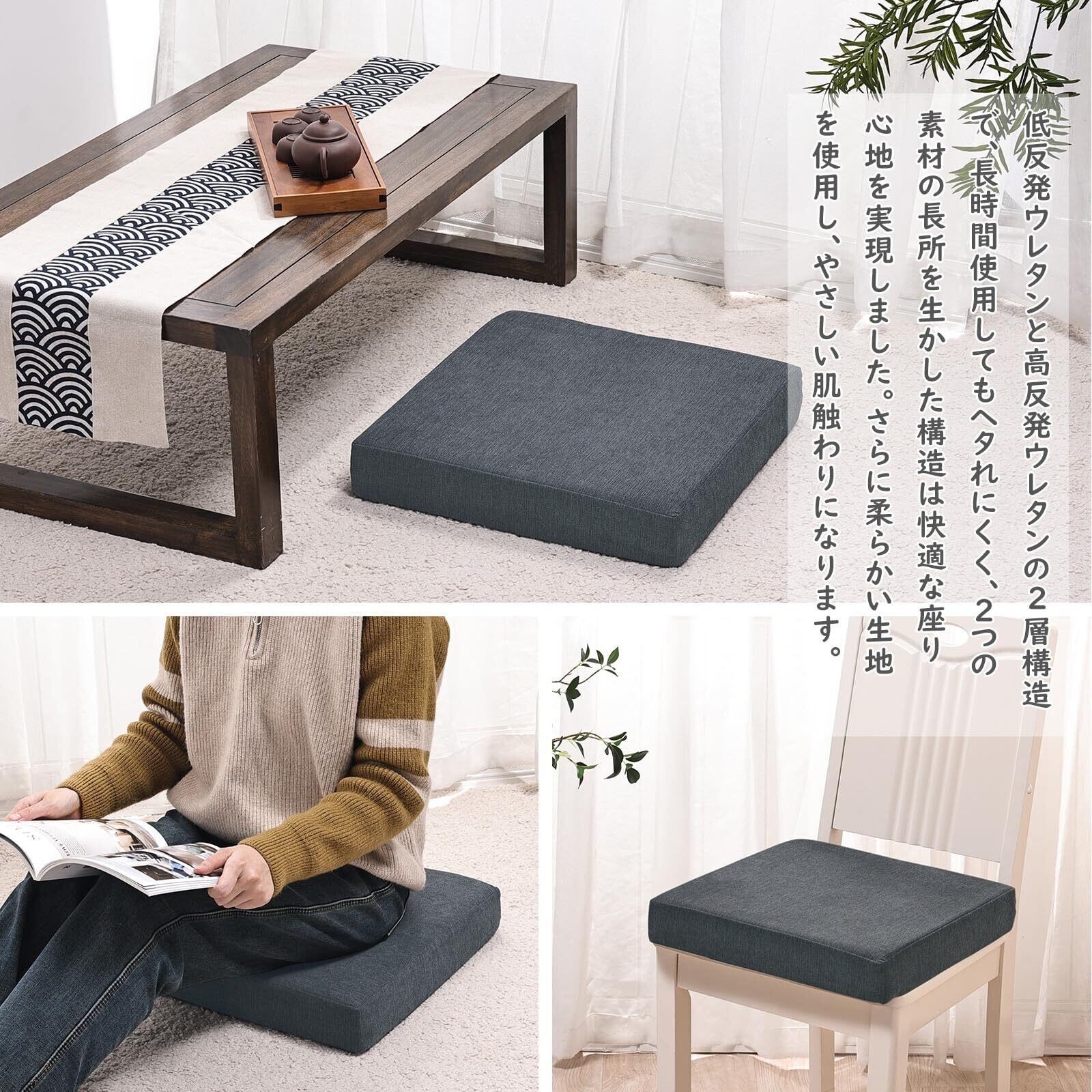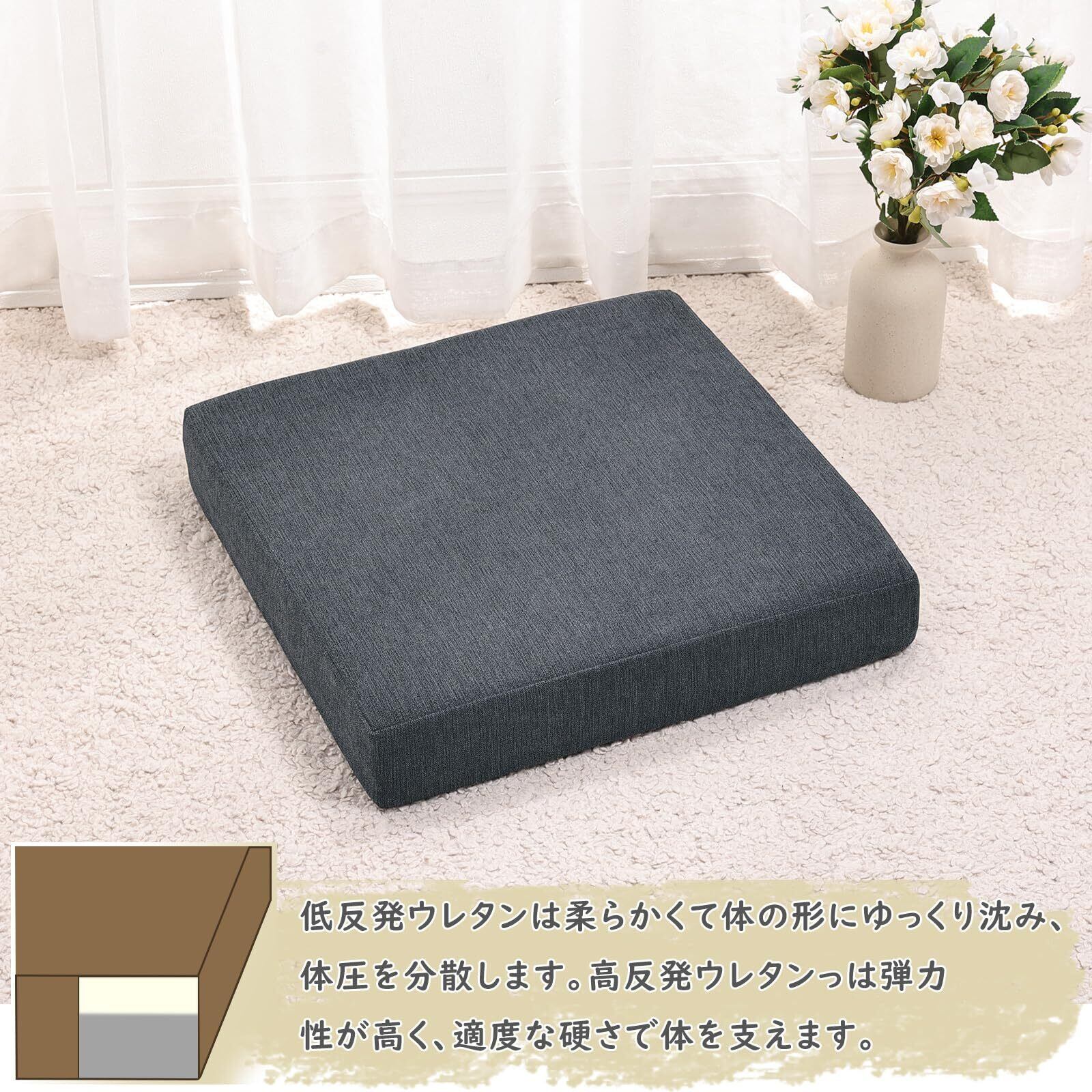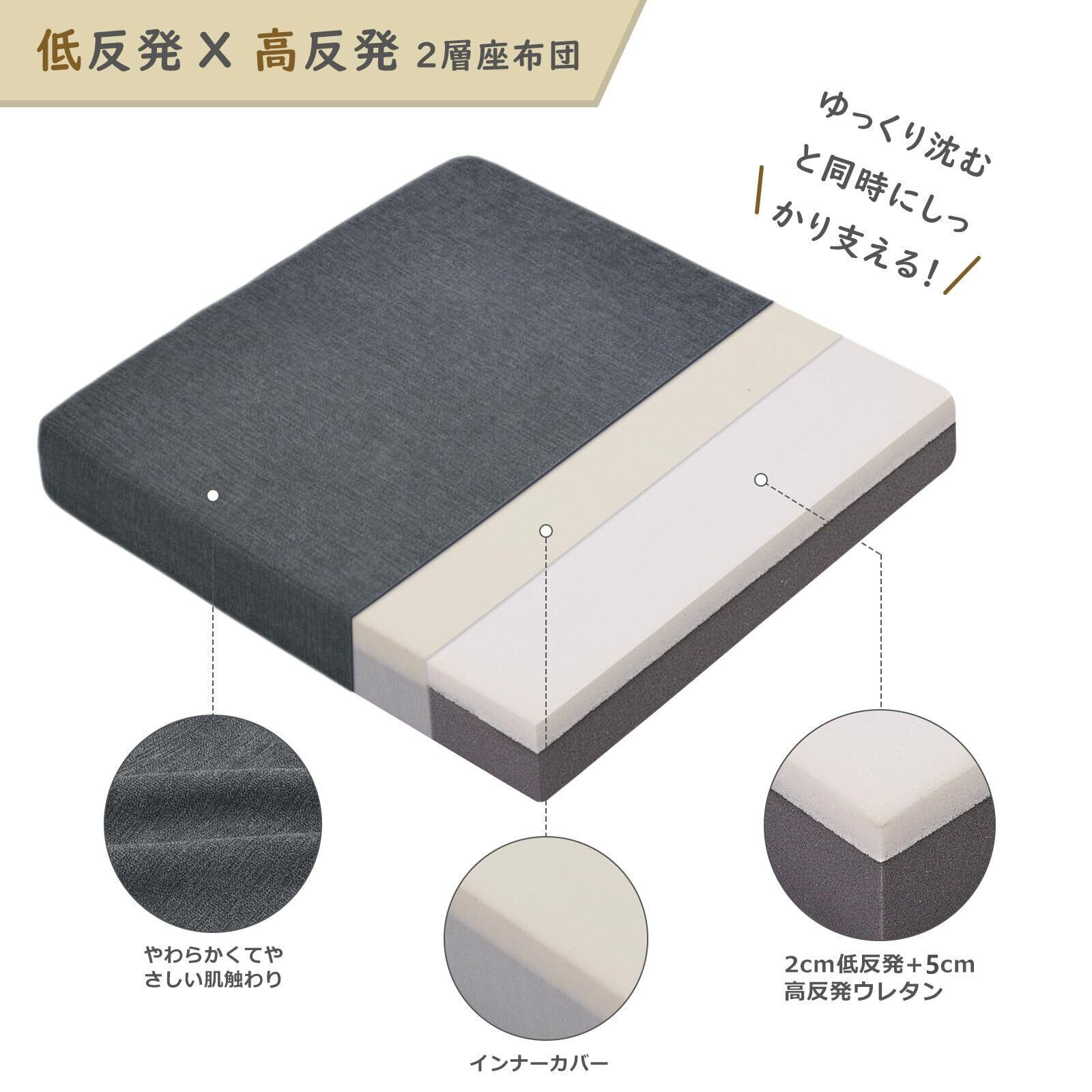 Baibu Home 座布団 クッション 低反発+高反発 クッション 厚め 7cm 椅子 クッション ざぶとん フロアクッション 2層構造 42cm 四角 ダークグレー