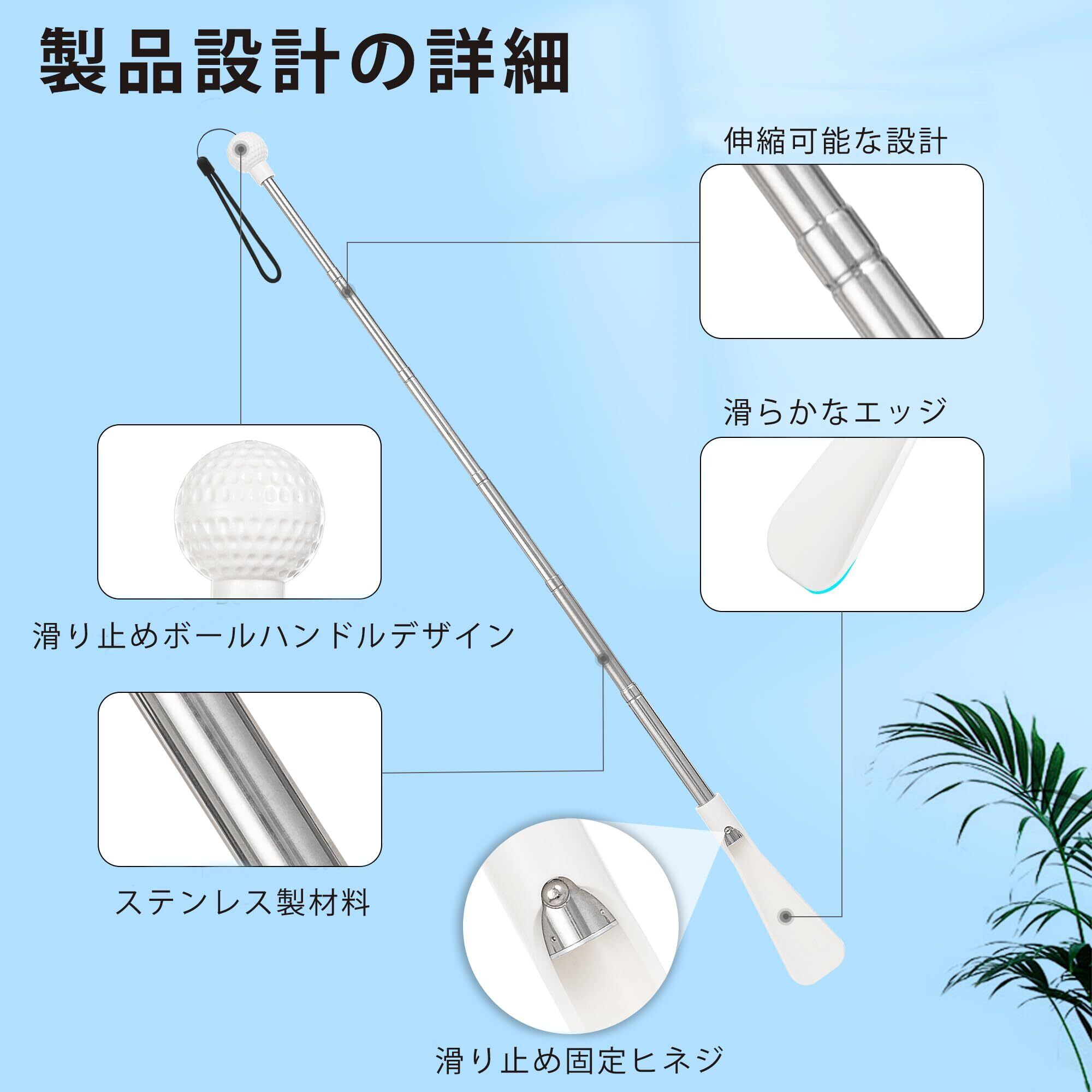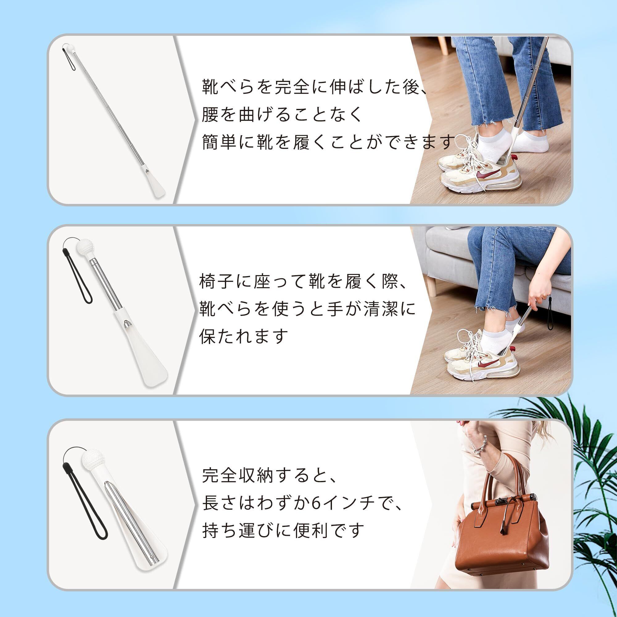 【全年齢層に適した伸縮式靴べら】靴べらの長さは18cmから92cmまで調節可能。座ったまま、または立ったままでも使用でき、腰を曲げることなく靴を履くことができます。お年寄り、妊婦、子供、男性、女性など、家族全員に適したデザインです。