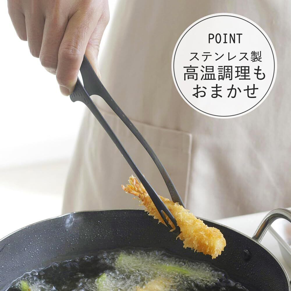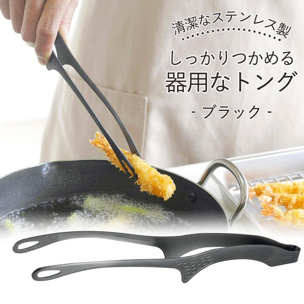 下村企販 先端が浮いて汚れない スマートキッチントング 大 【日本製】 細かい食材も掴みやすい アウトドア 食洗器対応 焼肉 揚げ物 全長26cm 菜箸トング ブラック 仙武堂 燕三条 45097 | hananoki