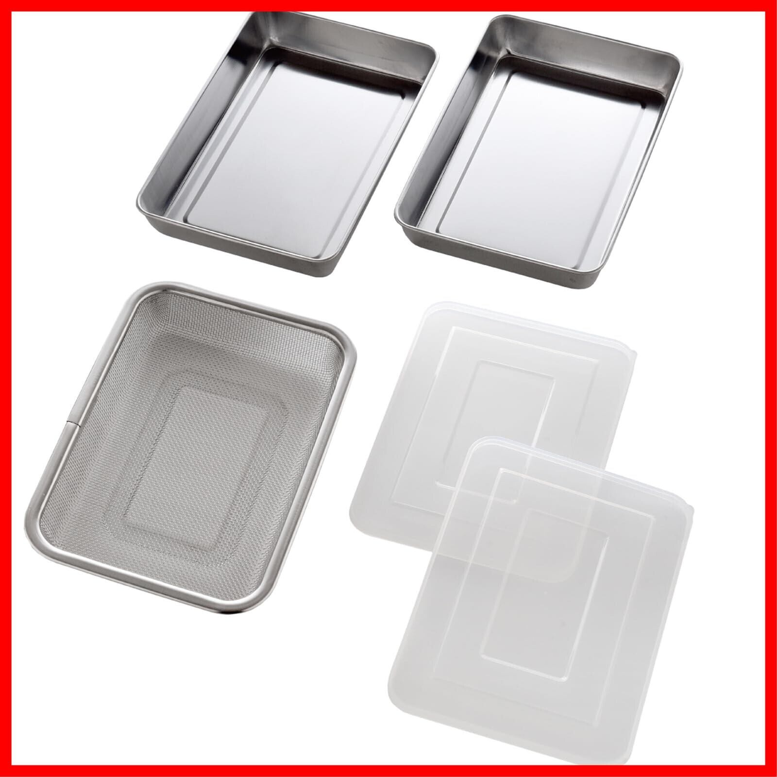 アーネスト 【日本製】 バット 5点セット 角型 ステンレス オーブン対応 スタッキングできる コンパクト収納 油切りや水切り、仕込みや保存に 料理 (蓋付き浅型ステンレスバット2個&角型ザル1個セット) 大手飲食店愛用ブランド A-77978 燕三条 | hananoki