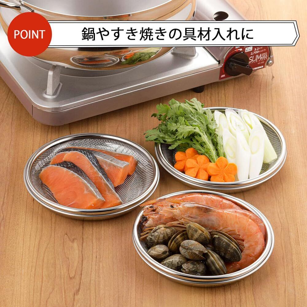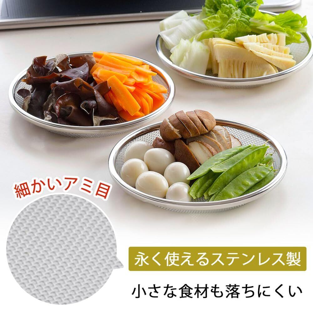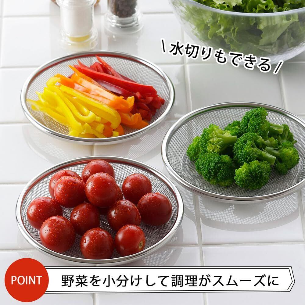 下村企販 ざる 水切り 浅ザル 3枚組 【日本製】 食洗機対応 食材の小分け 下ごしらえに便利 脚付き 平ざる 野菜 ステンレス セット ママクック 43024