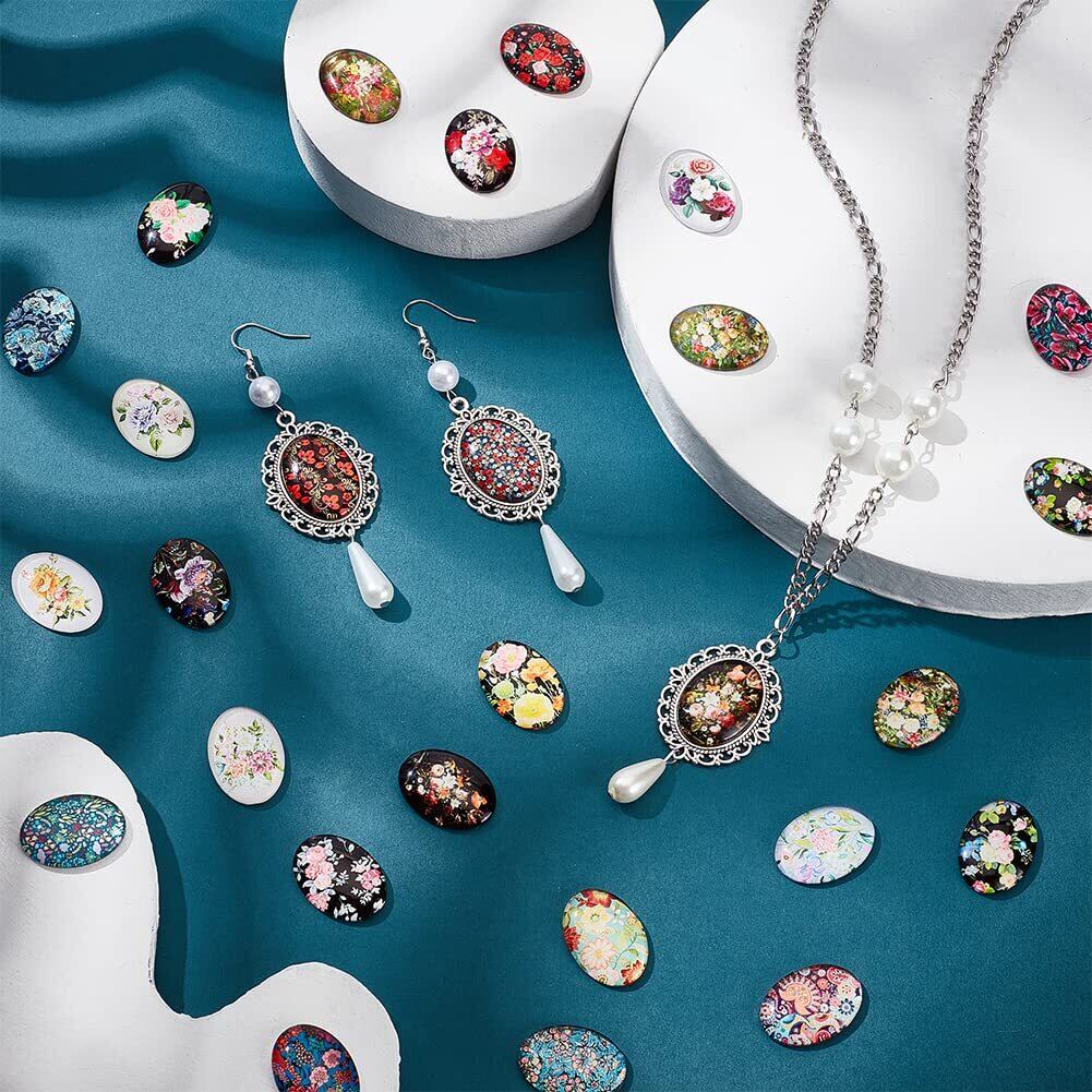 素材:ガラス製オーバルカボションは、手触りがよく、表面が滑らかで、割れにくい加工が施されています。 平らな部品に付着させて、美しいペンダント、リング、装飾品を作るのに適しています。