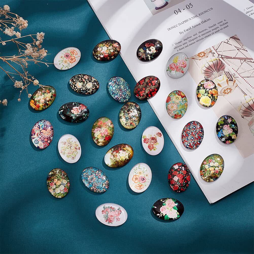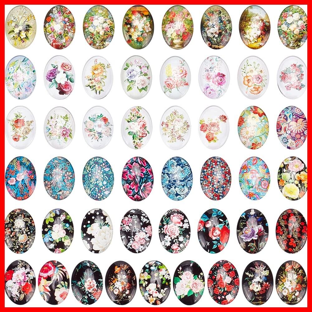 PH PandaHall 50個セット カボション 25x18mm ミックス ガラスカボション 帯留め作り オーバルビーズ 拡大レンズ効果 花柄 デコパーツ ジュエリー用 手芸用品 着物の装飾 アクセサリーパーツ 手作り 材料 素材 | hananoki